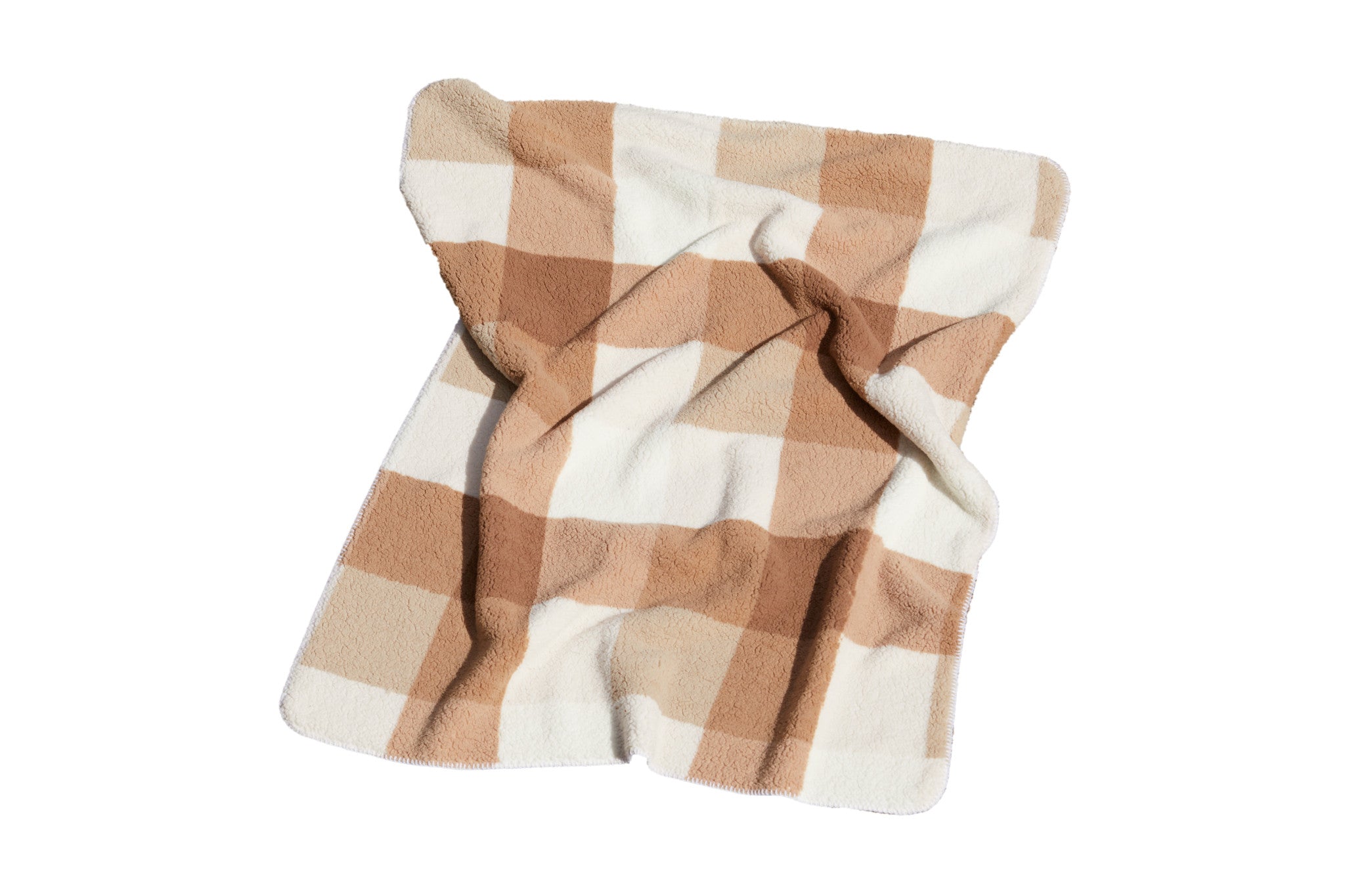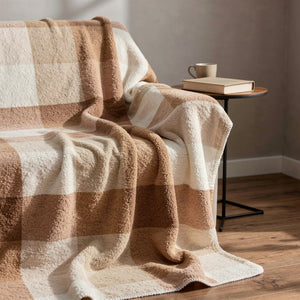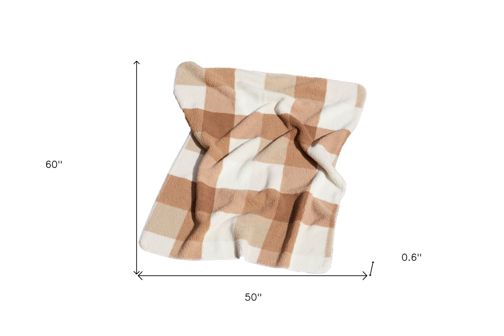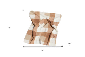 50" X 60" Ivory And Taupe Faux Sherpa Plaid Throw Blanket