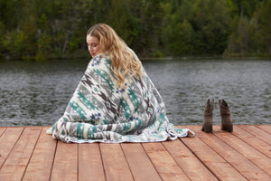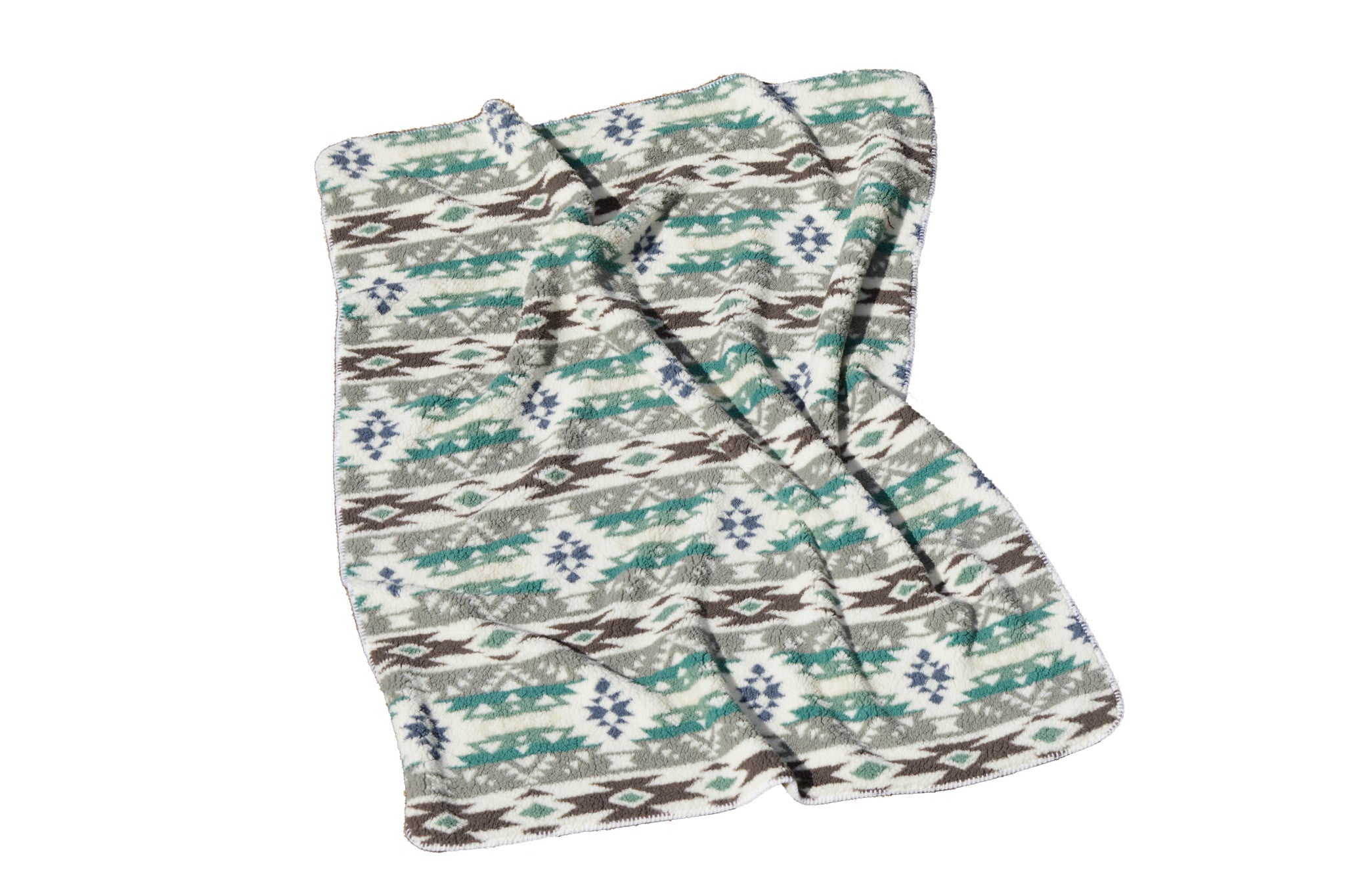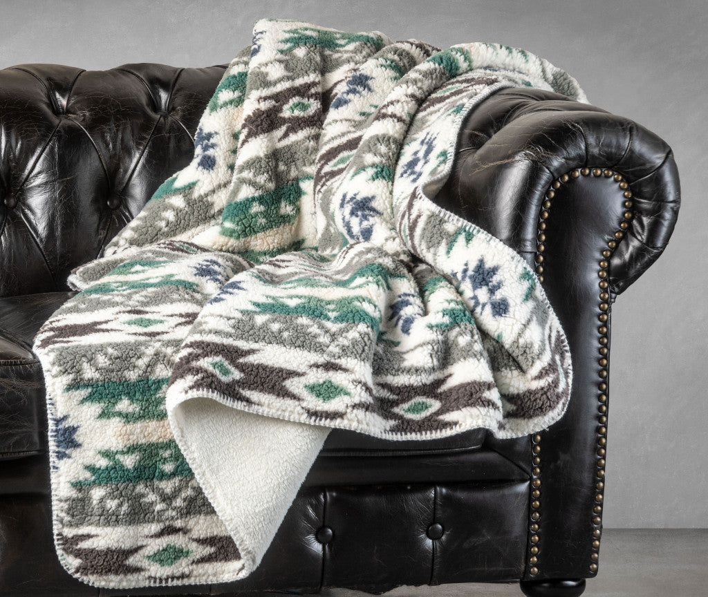 50" X 60" Ivory Gray And Green Faux Sherpa Southwestern Throw Blanket