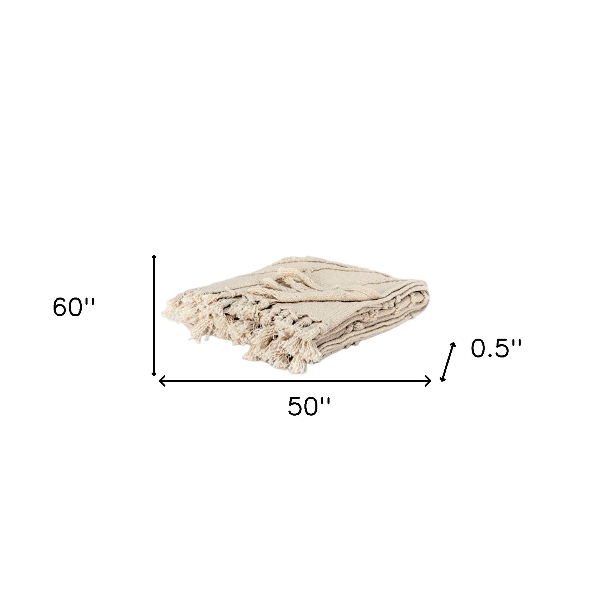 50" X 60" Natural Cotton Woven Floral Throw Blanket with Tassels and Fringe