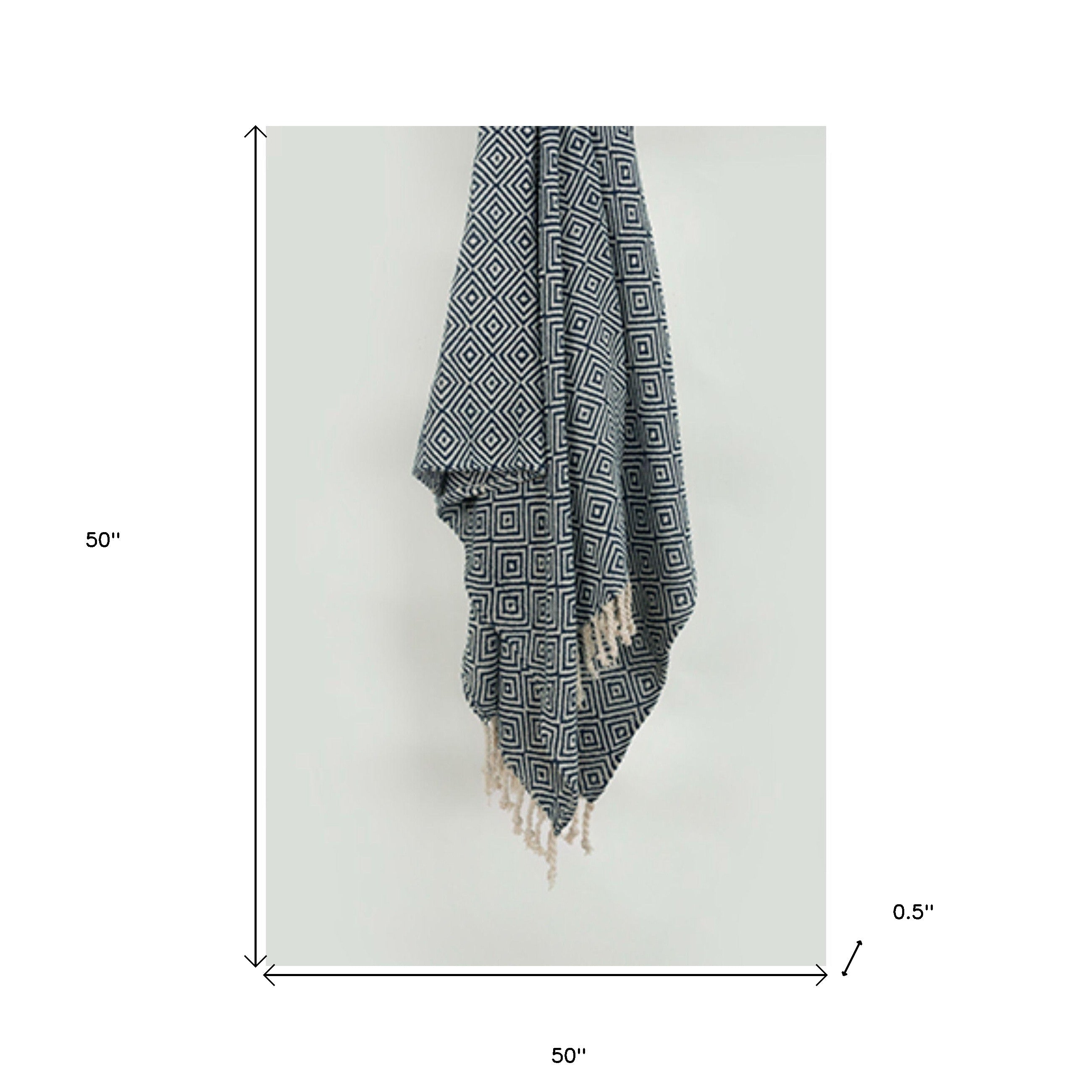 50" X 60" Navy Blue Cotton Woven Geometric Throw Blanket with Fringe
