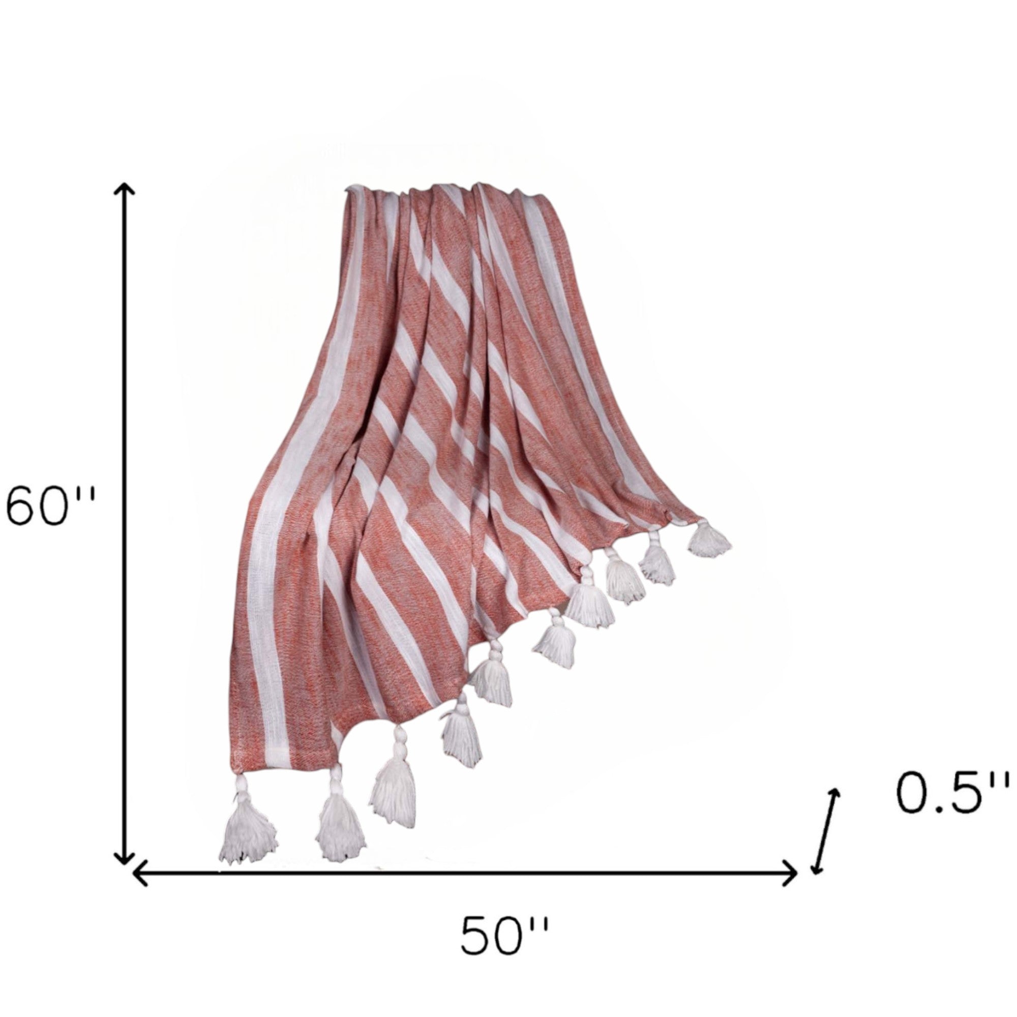 50" X 60" Rust Woven Cotton Striped Throw Blanket with Tassels