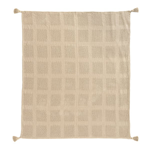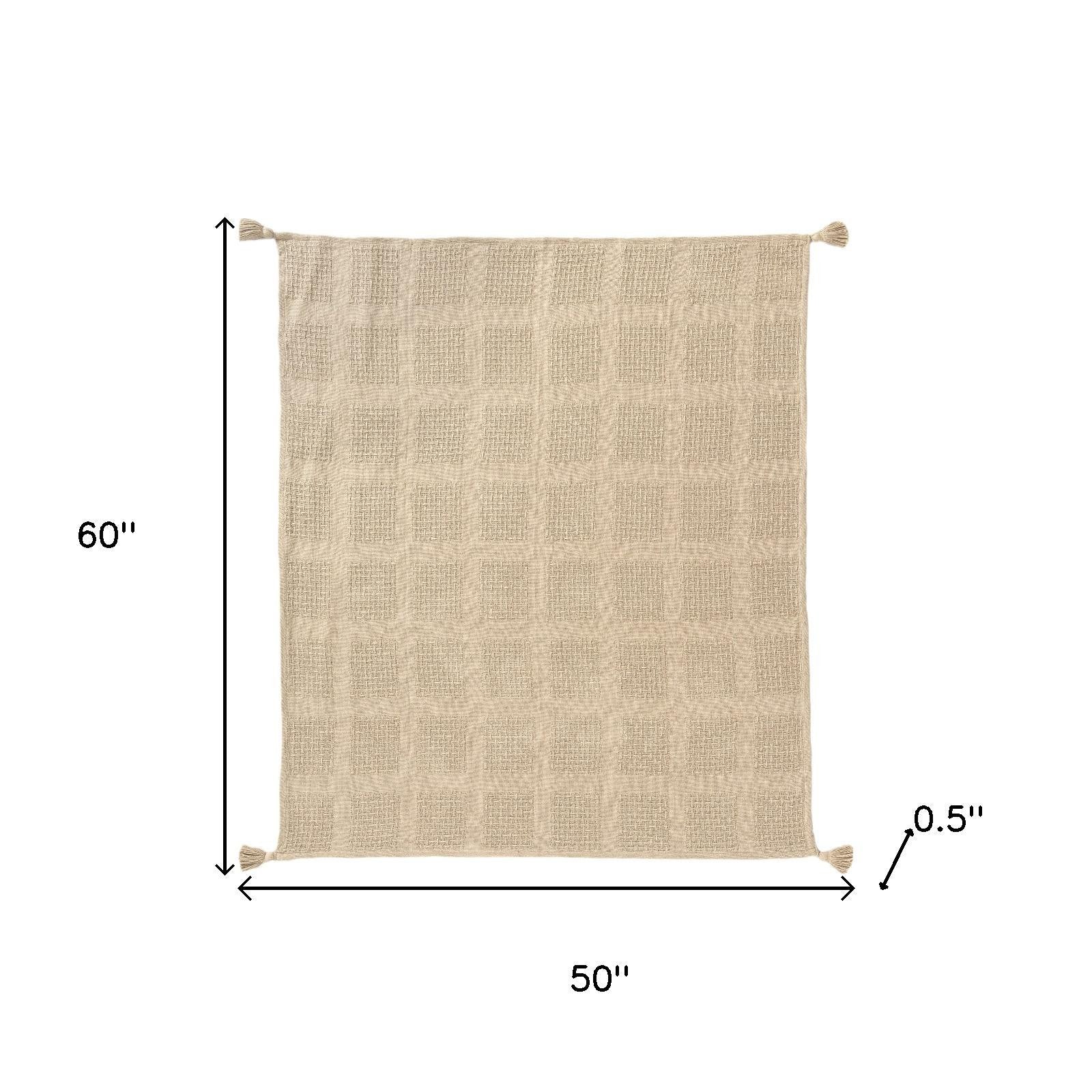 50" X 60" Tan And Beige Patchwork Cotton Woven Throw Blanket