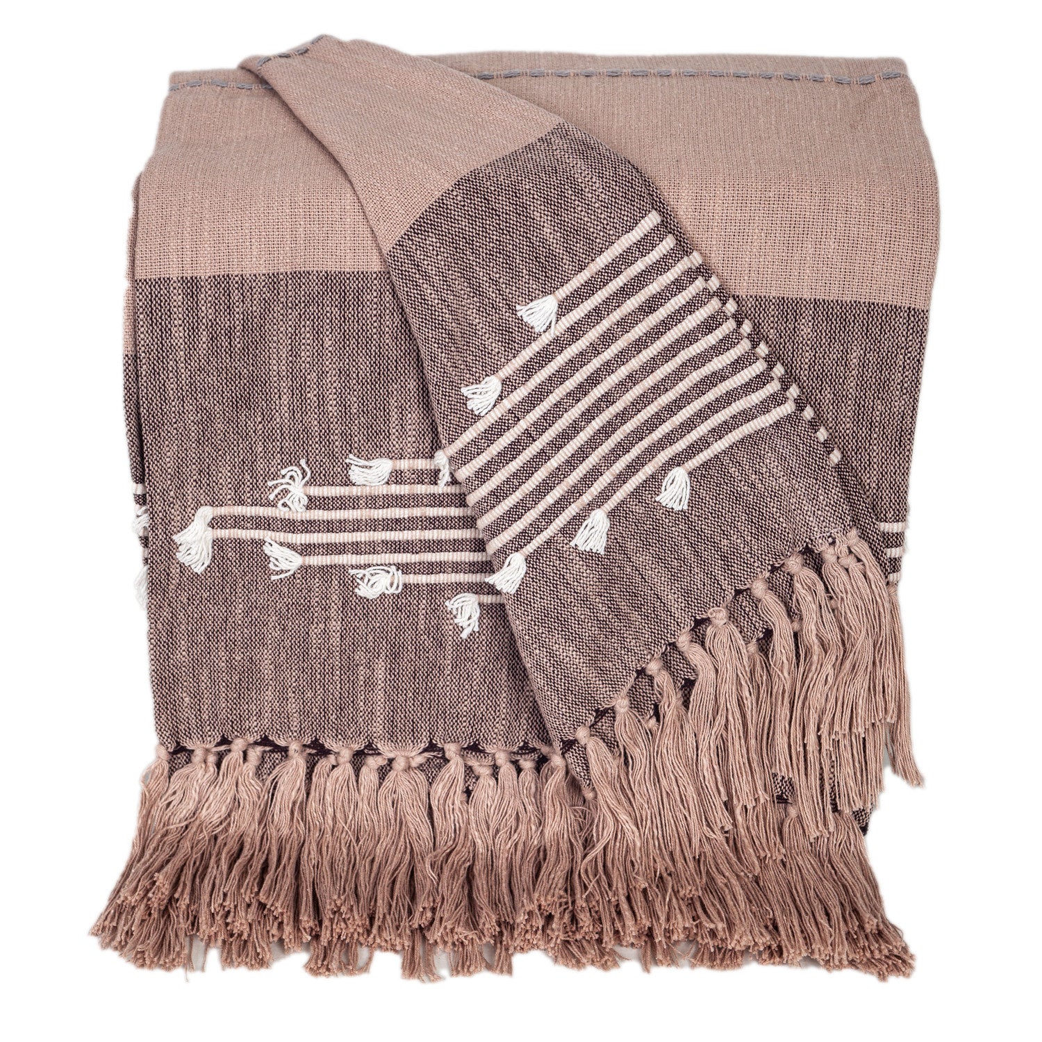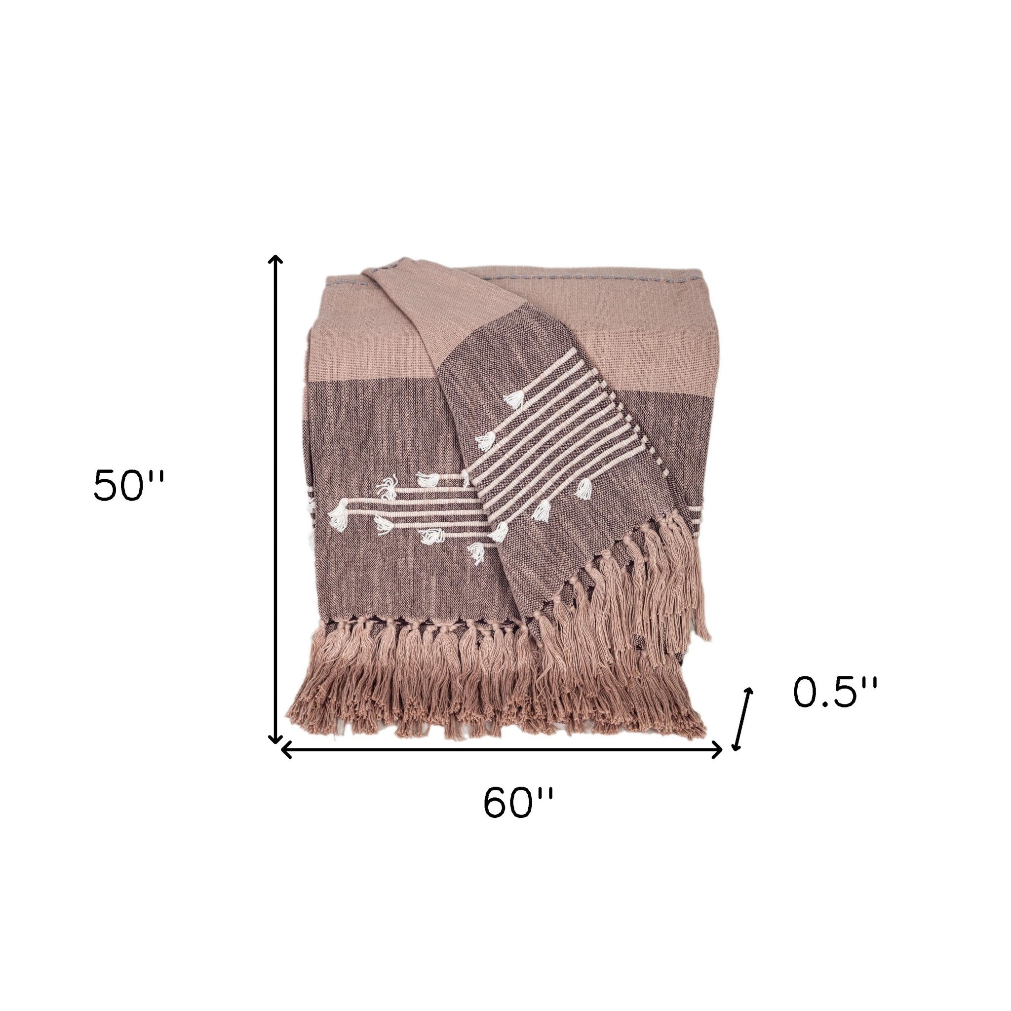 50" X 60" Taupe and Gray Woven Cotton Striped Throw Blanket with Fringe