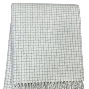 50" X 67" Cream And Light Gray Cotton Blend Woven Plaid Throw Blanket with Fringe