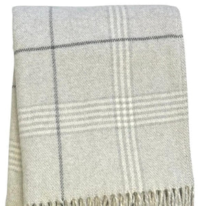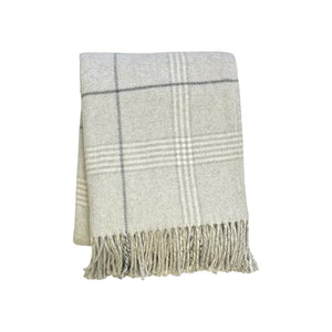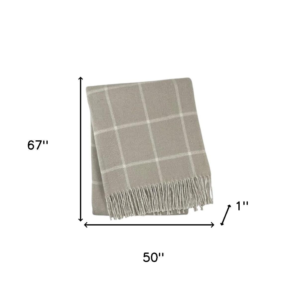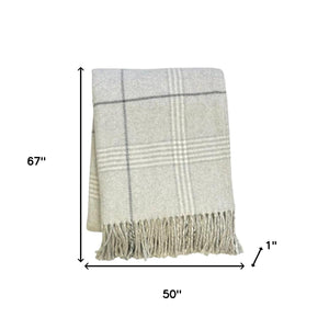 50" X 67" Sand And White Cotton Blend Woven Plaid Throw Blanket with Fringe