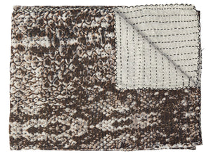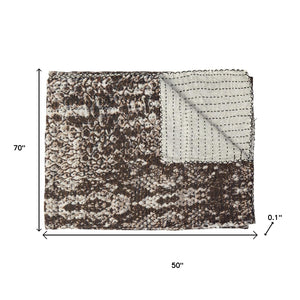 50" X 70" Brown And Ivory Cotton Quilted Kantha Throw Blanket With Embroidery