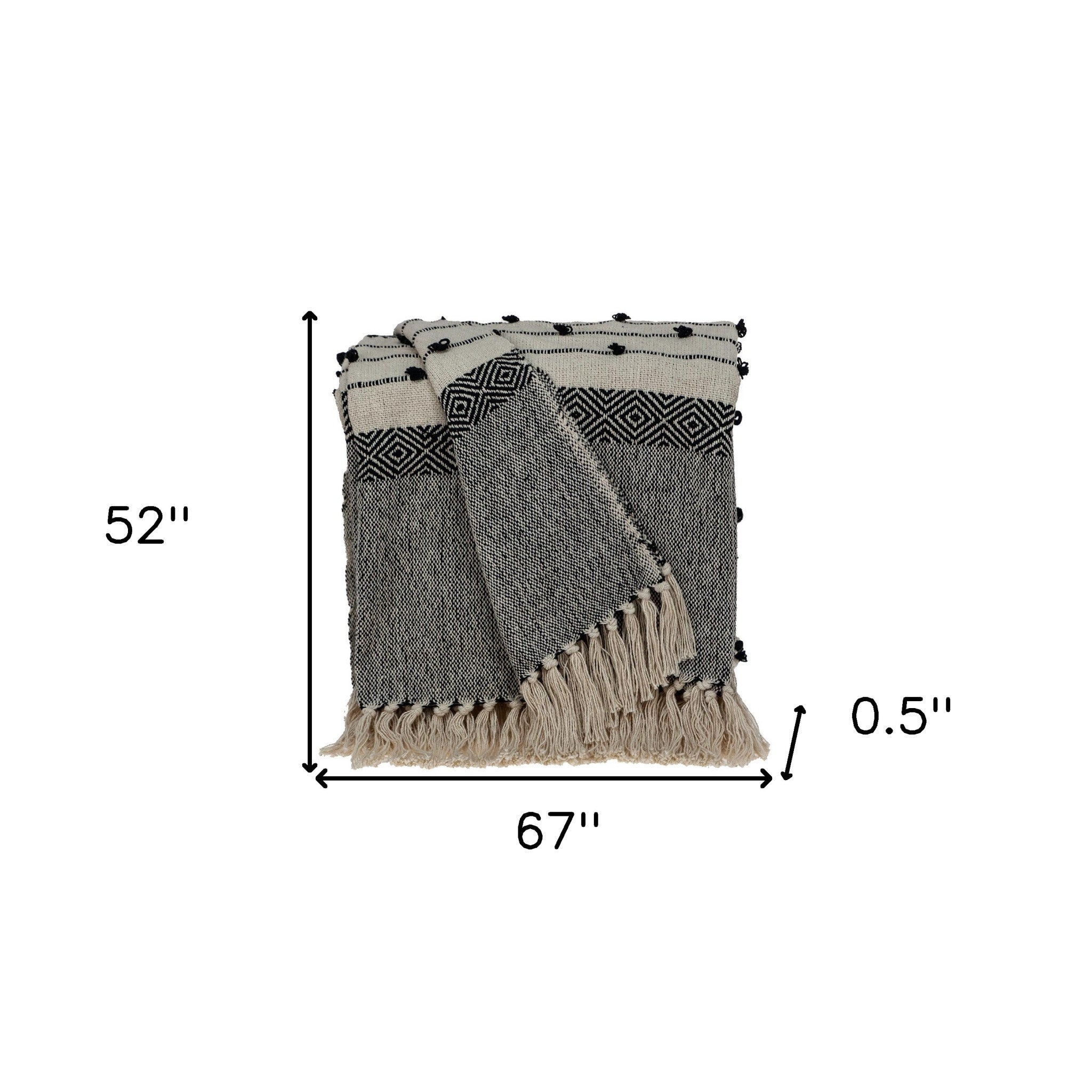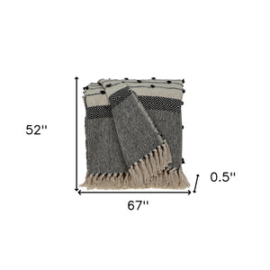 52" X 67" Beige and Black Woven Wool Throw Blanket