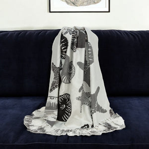 52" X 67" Ivory and Gray Woven Cotton Coastal Seashell Throw Blanket with Fringe