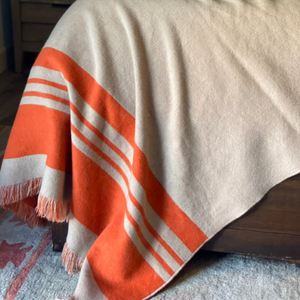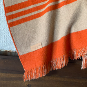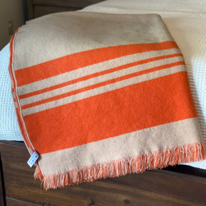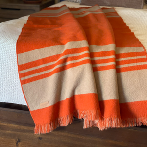 54" X 74" Orange Wool Acrylic Blend Woven Throw Blanket