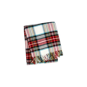 55" X 70" Black Red And White Plaid Cotton Blend Plush Throw Blanket with Fringe