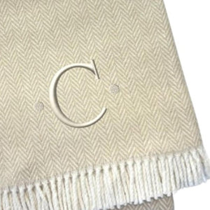 55" X 70" Linen And White Herringbone Cotton Blend C Initial Throw Blanket with Tassels And Embroidery