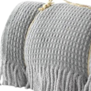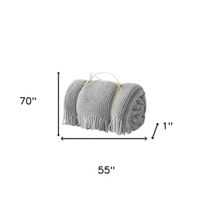 55" X 70" Sage And Gray Cotton Blend Woven Checkered Plush Throw Blanket with Fringe