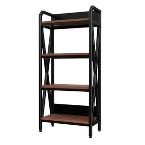 56" Black And Brown Metal and Wood Four Tier Etagere Bookcase