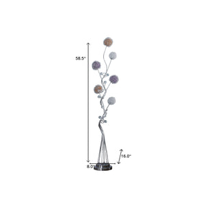 59" Silver Six Light LED Novelty Floor Lamp With Purple And White Metal Novelty Shade