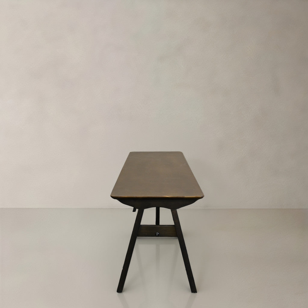 59" Walnut and Black Solid Wood Dining Bench