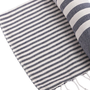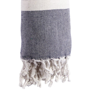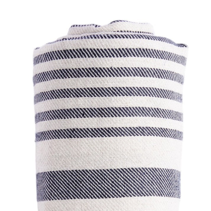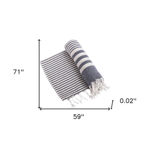 59" X 71" Blue and White Cotton Plain Weave Striped Throw Blanket with Tassels