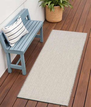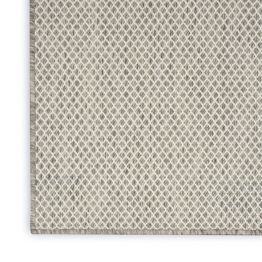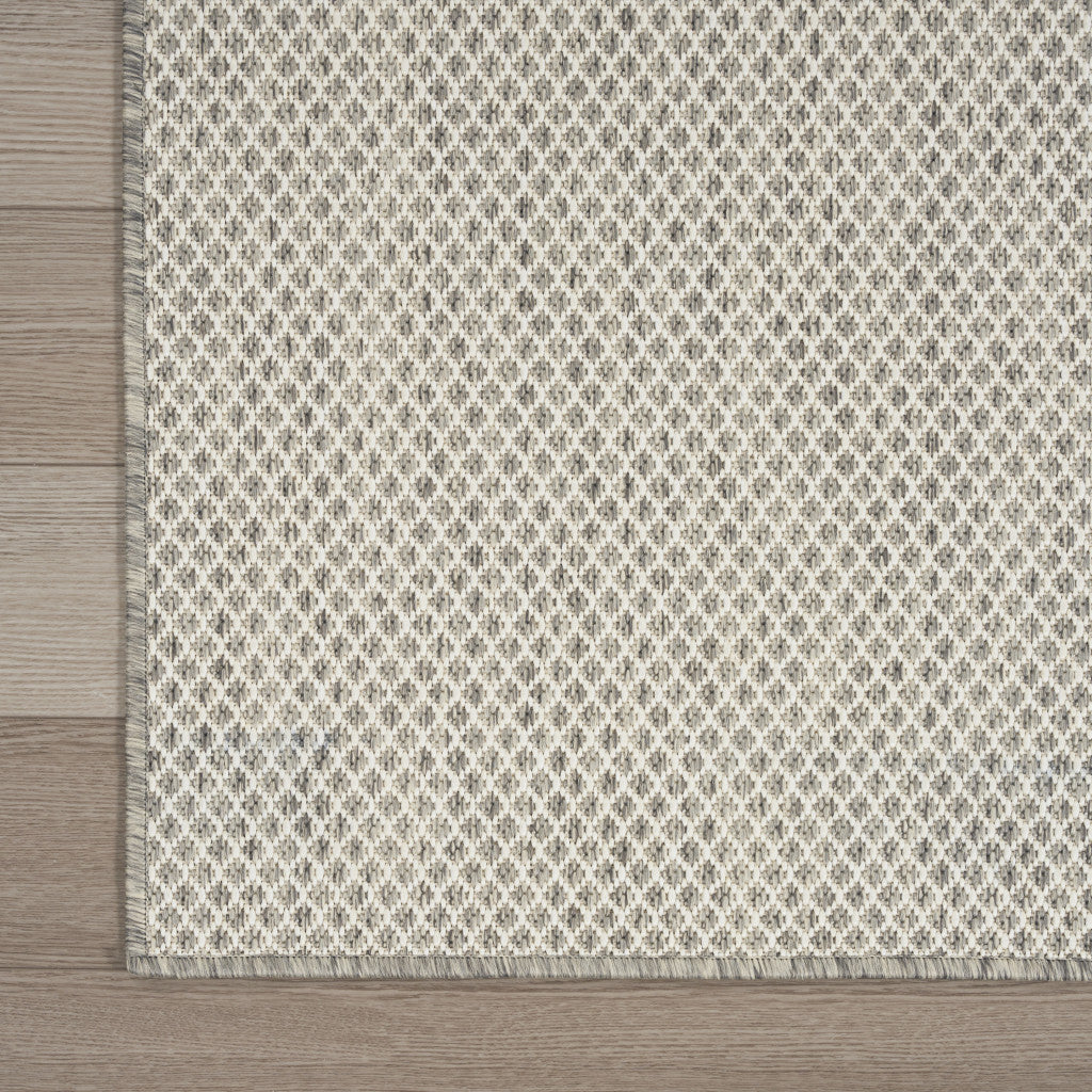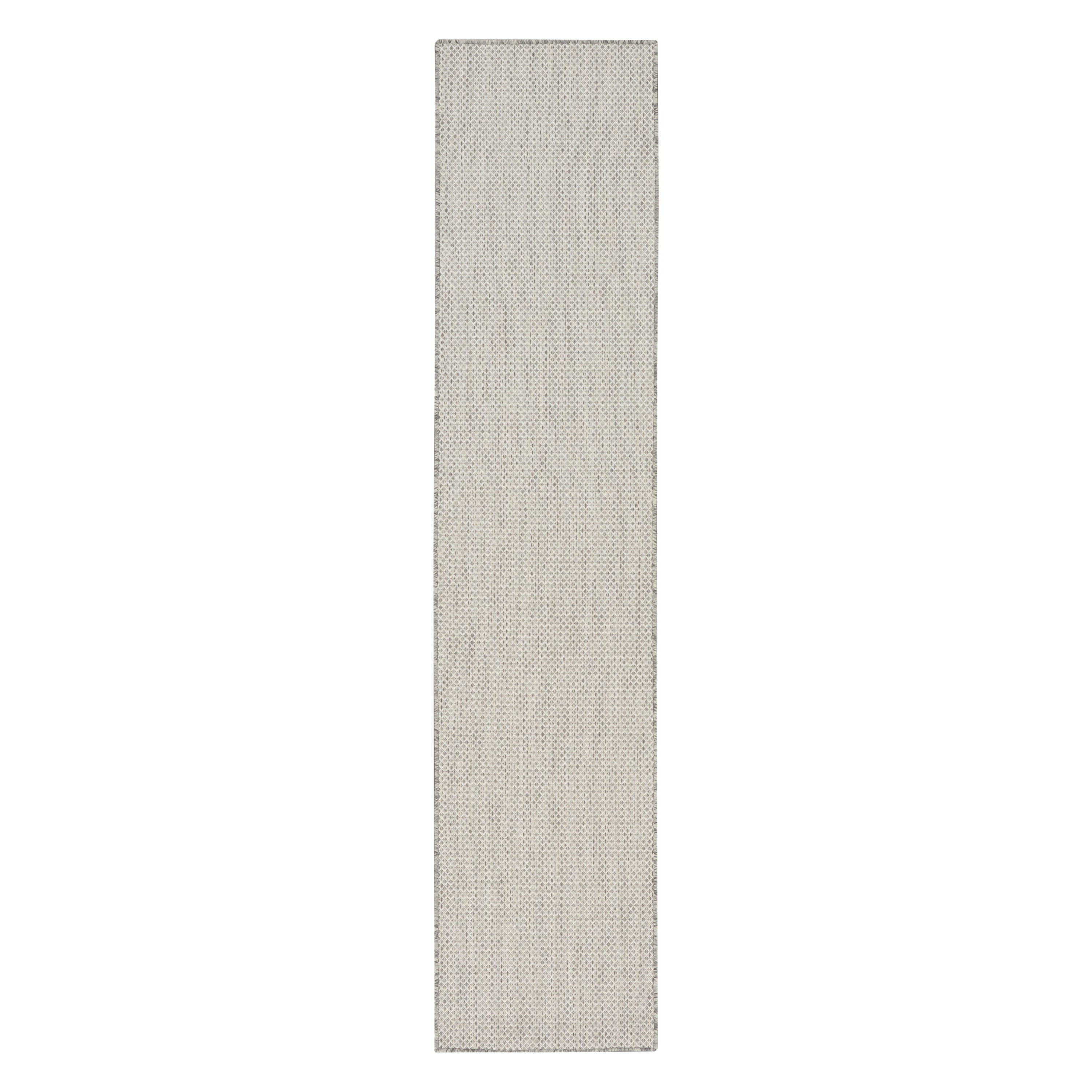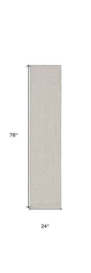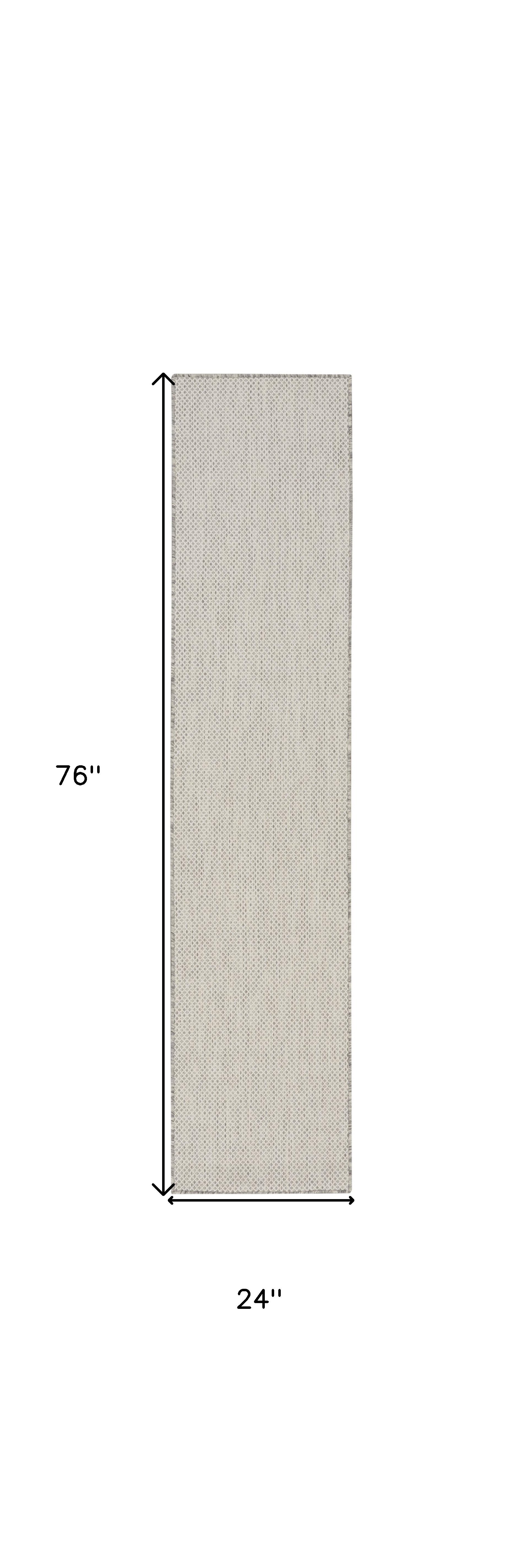6' Ivory And Silver Geometric Indoor Outdoor Runner Rug