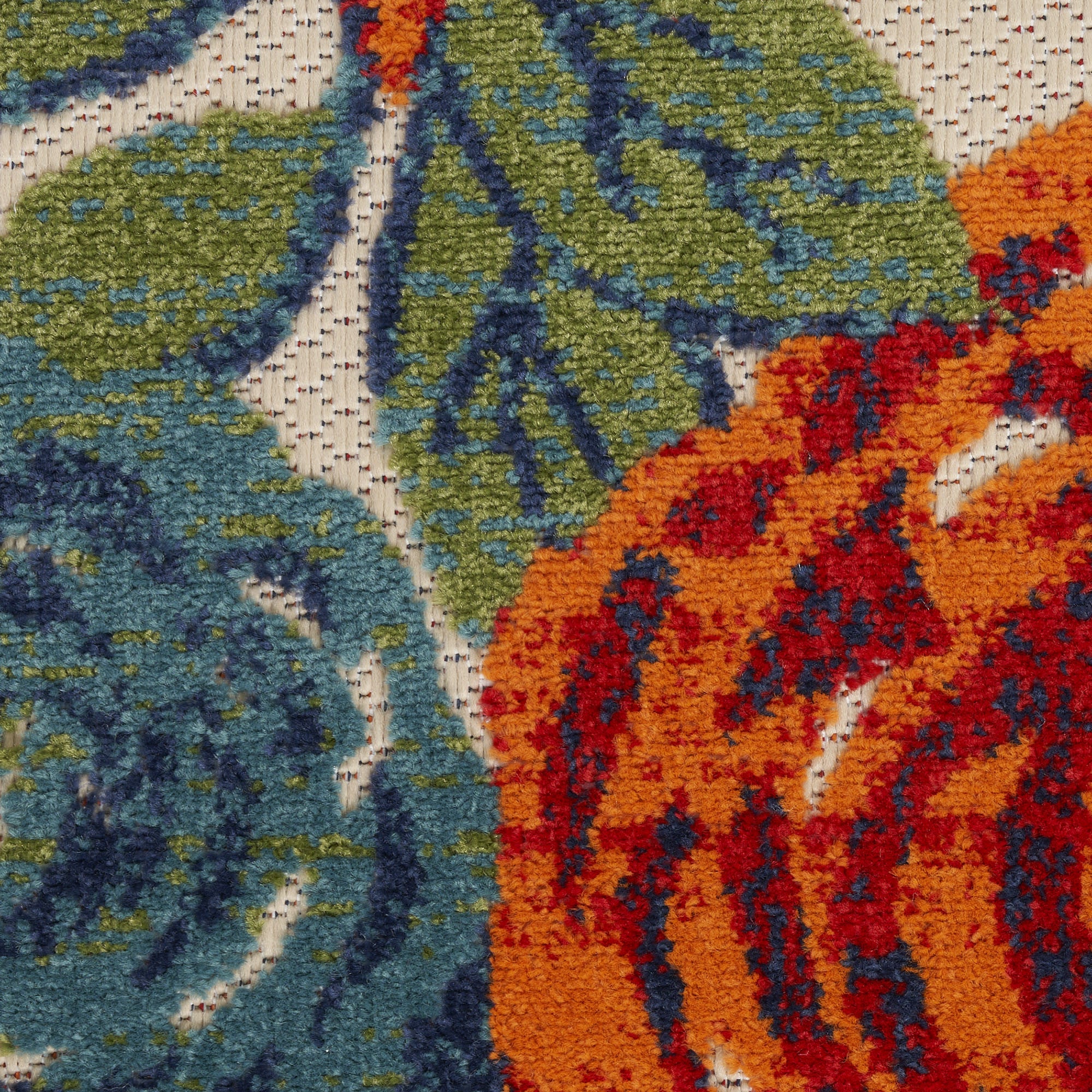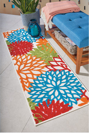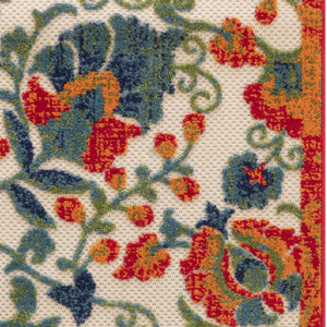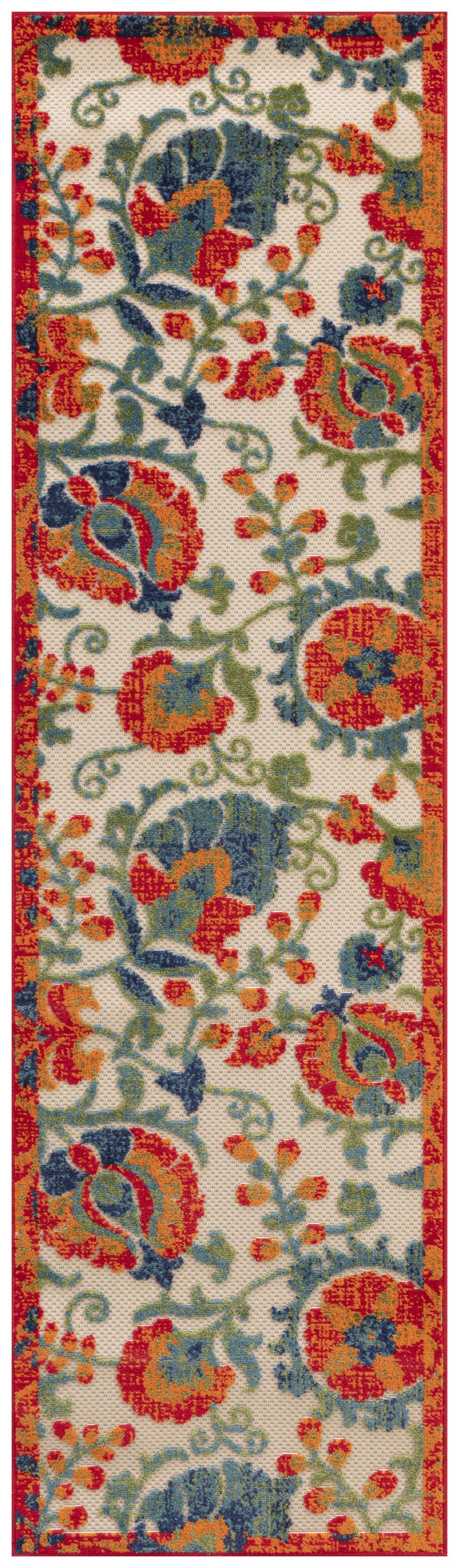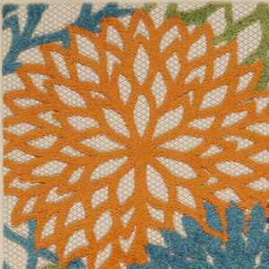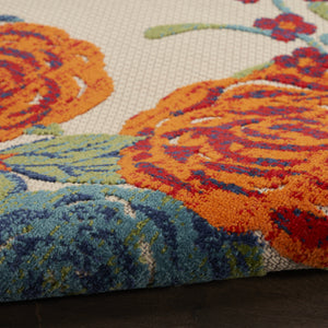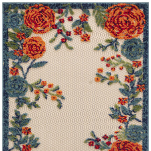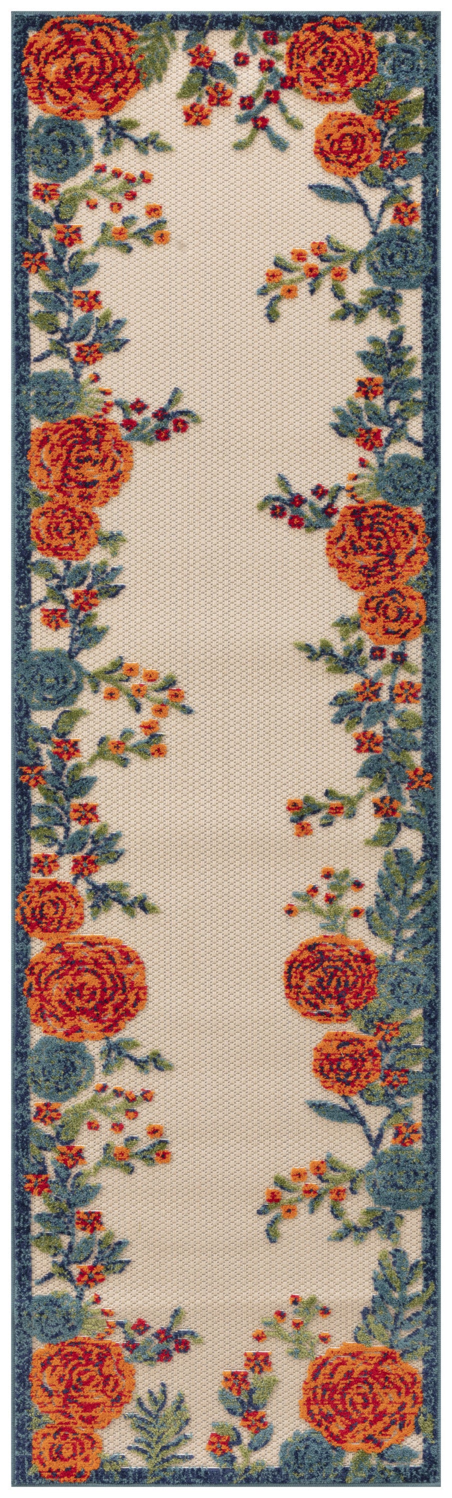 6' Ivory Blue And Orange Floral Indoor Outdoor Runner Rug