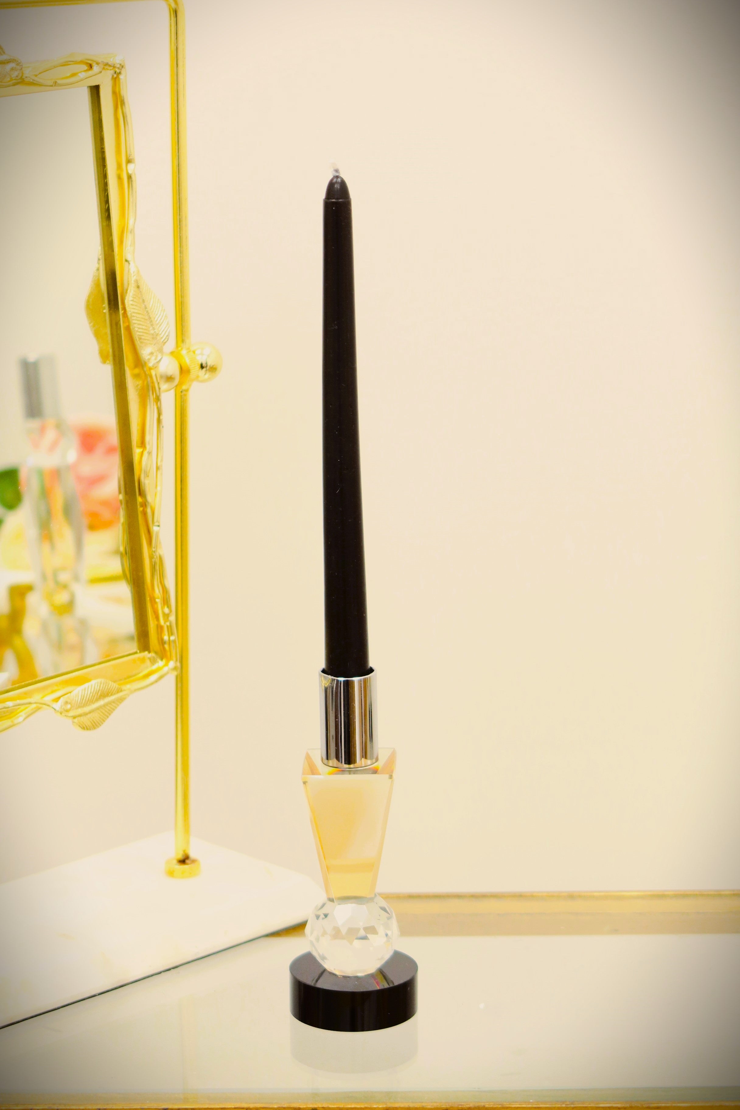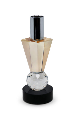 6" Silver Amber Clear And Black Faceted Crystal Tabletop Taper Candlestick