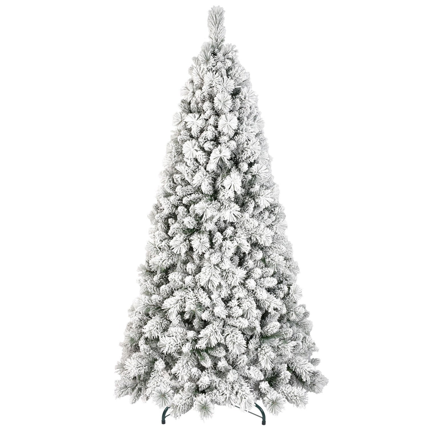6' White Pre Lit Full Flocked Pine Christmas Tree With Decorations