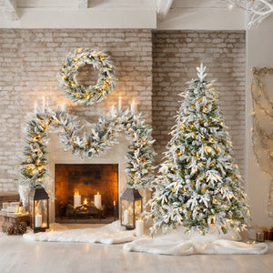 6' White Pre Lit Full Flocked Spruce Christmas Tree With Decorations