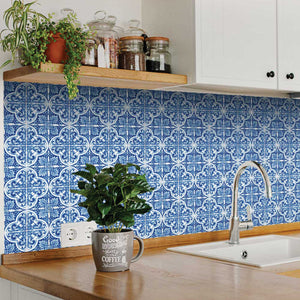 6" X 6" Blue and White Cross Peel And Stick Tiles