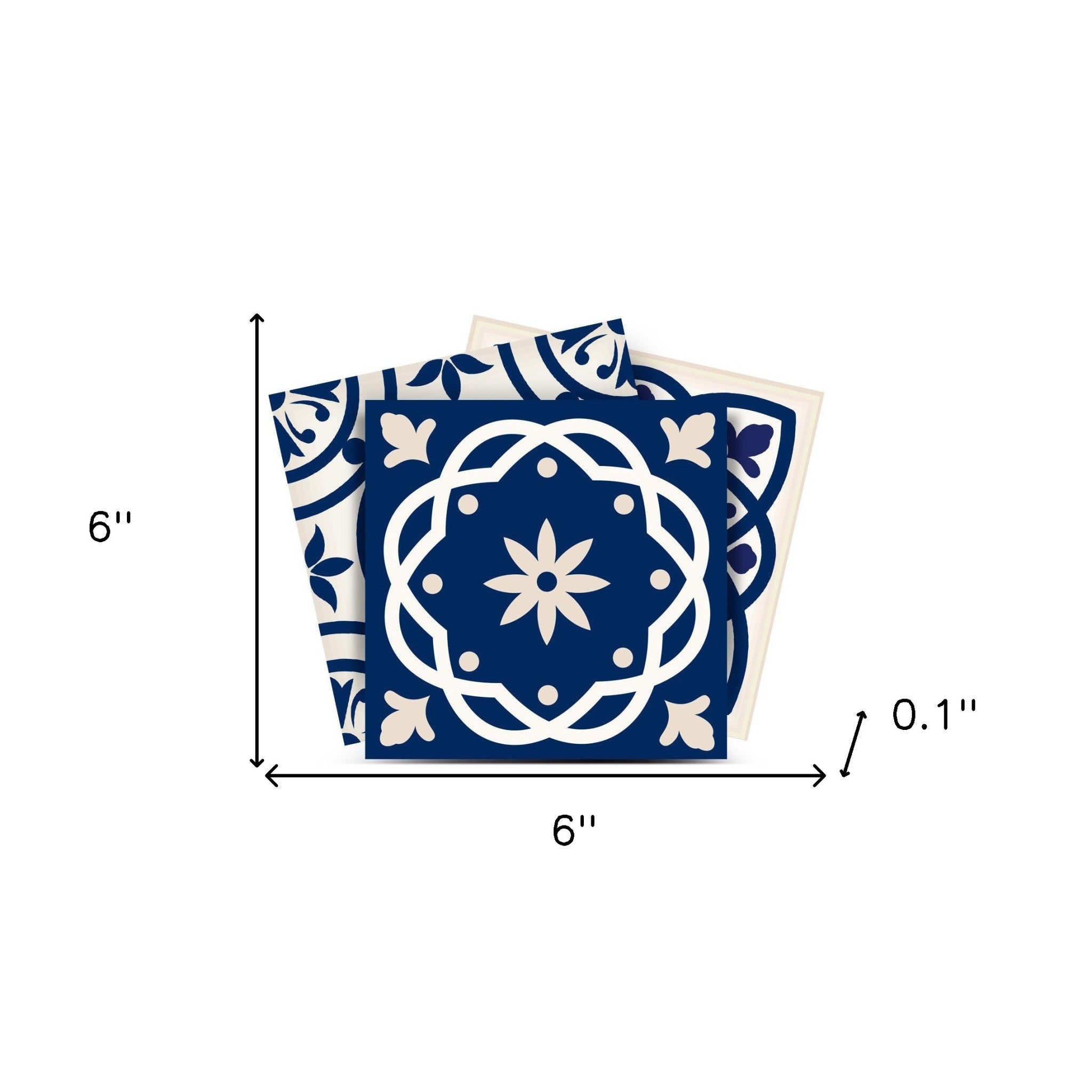 6" X 6" Midnight Blue And White Peel And Stick Removable Tiles