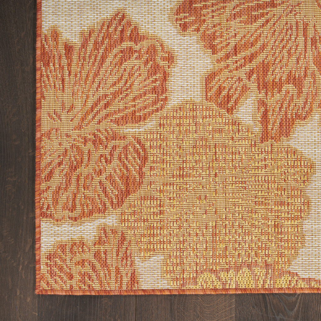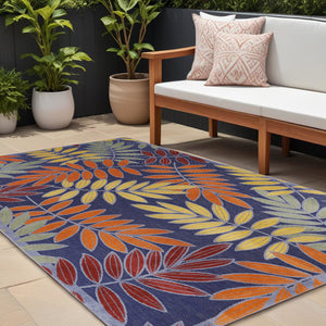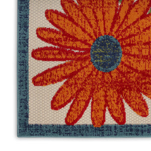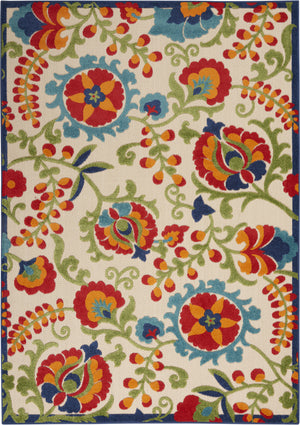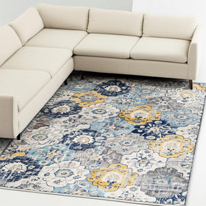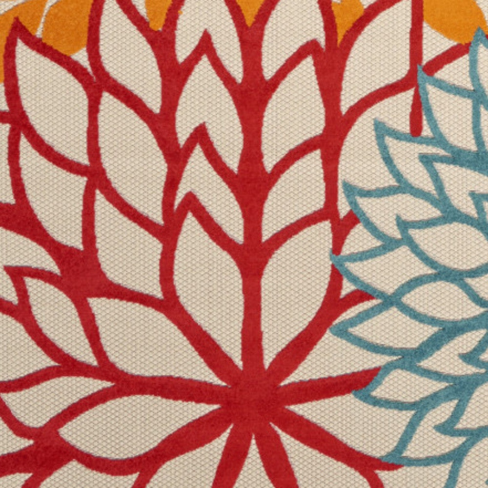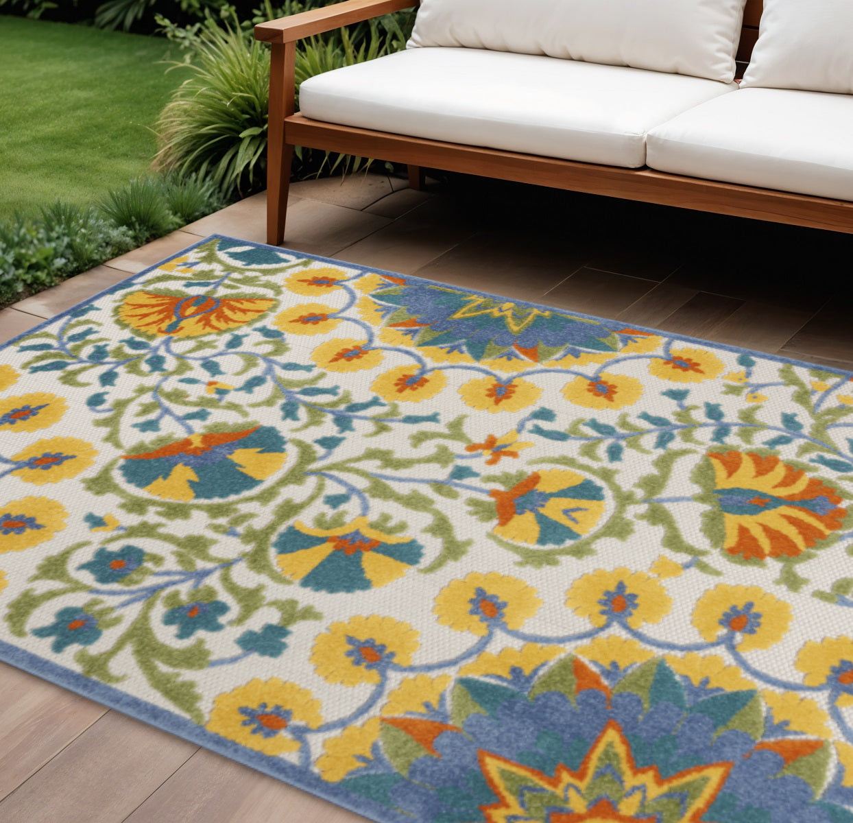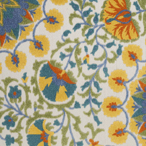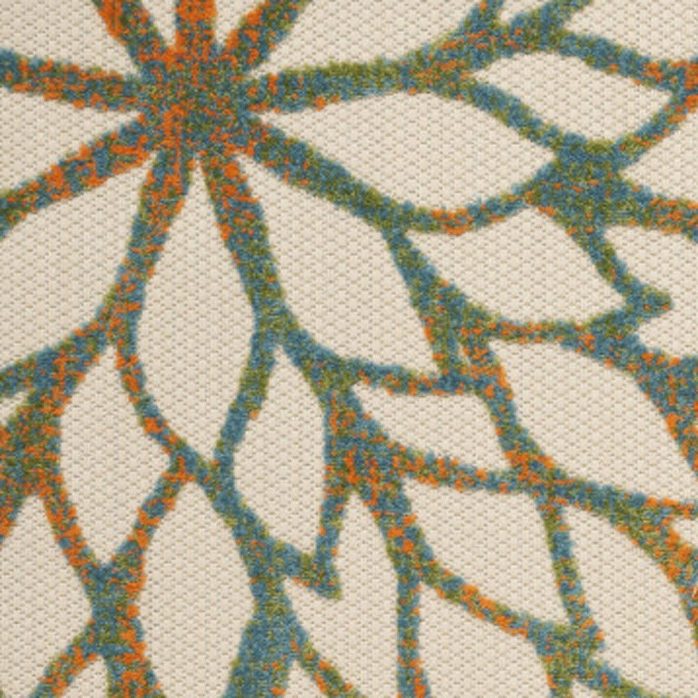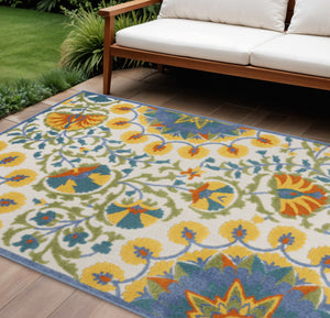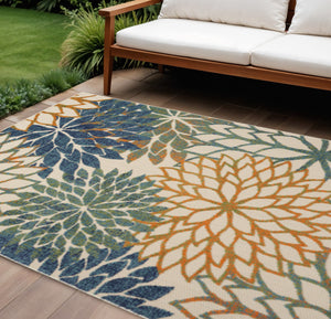 6' X 9' Ivory Blue Yellow And Orange Floral Indoor Outdoor Area Rug