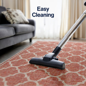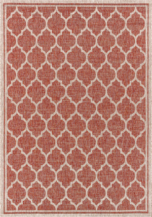 6' X 9' Red And Beige Geometric Indoor Outdoor Area Rug