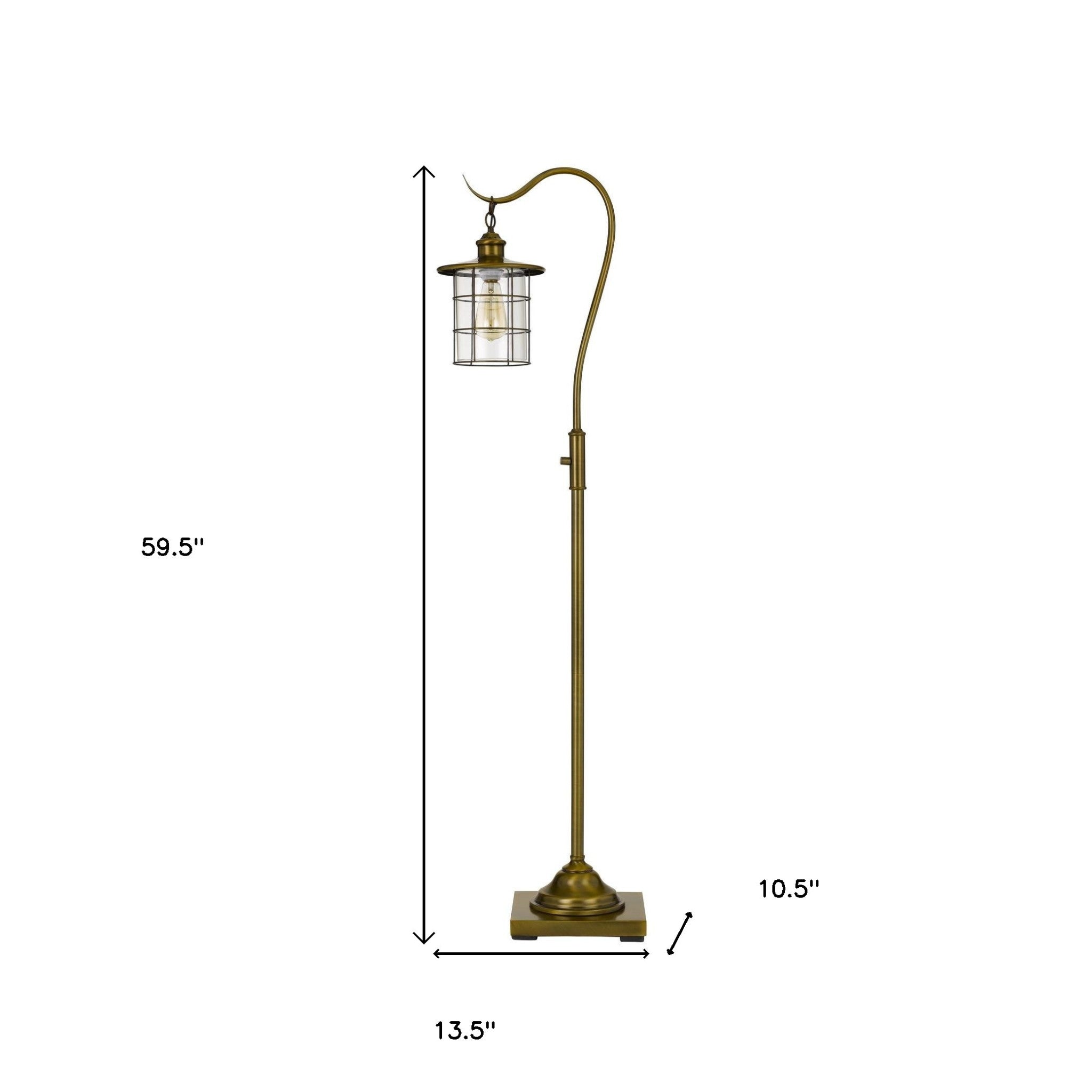 60" Brass Traditional Shaped Floor Lamp With Bronze Transparent Glass Drum Shade