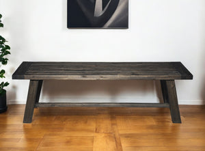 60" Gray And Dark Brown Distressed Wood Dining Bench