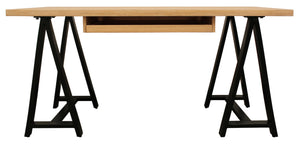 60" Natural and Black Solid Wood and Metal Trestle Executive Desk