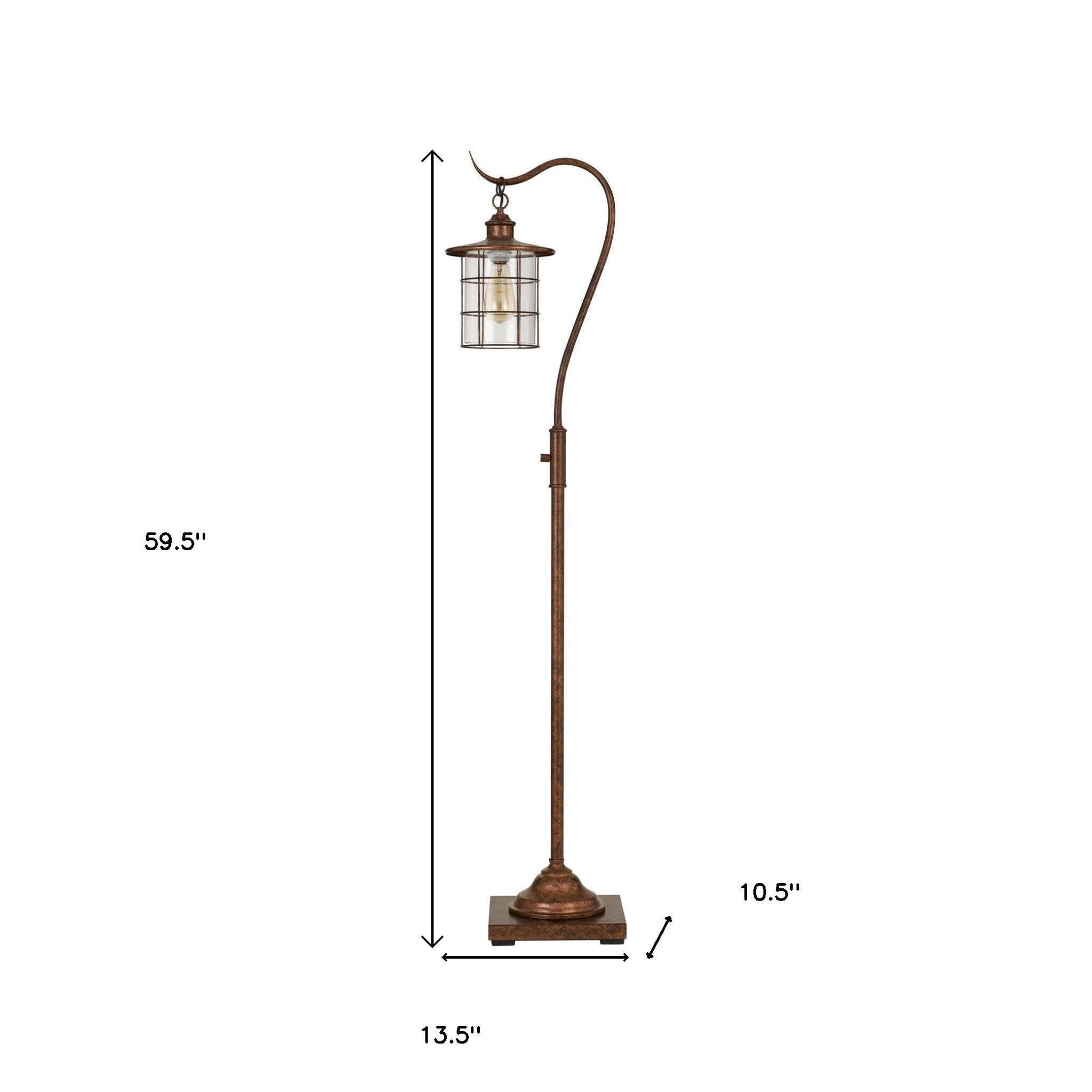 60" Rusted Traditional Shaped Floor Lamp With Rust Transparent Glass Drum Shade