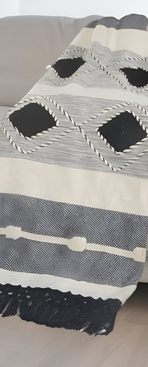 60" X 50" Black and Blue Woven Cotton Striped Throw Blanket with Tassels