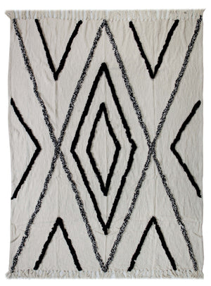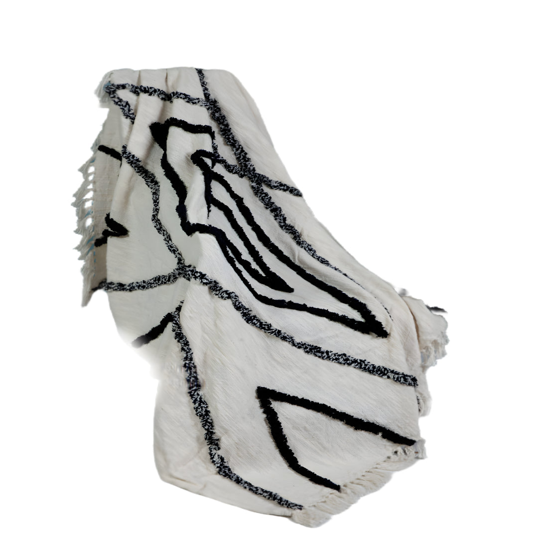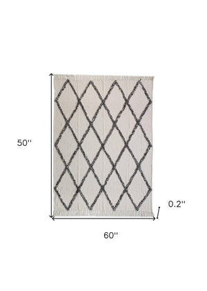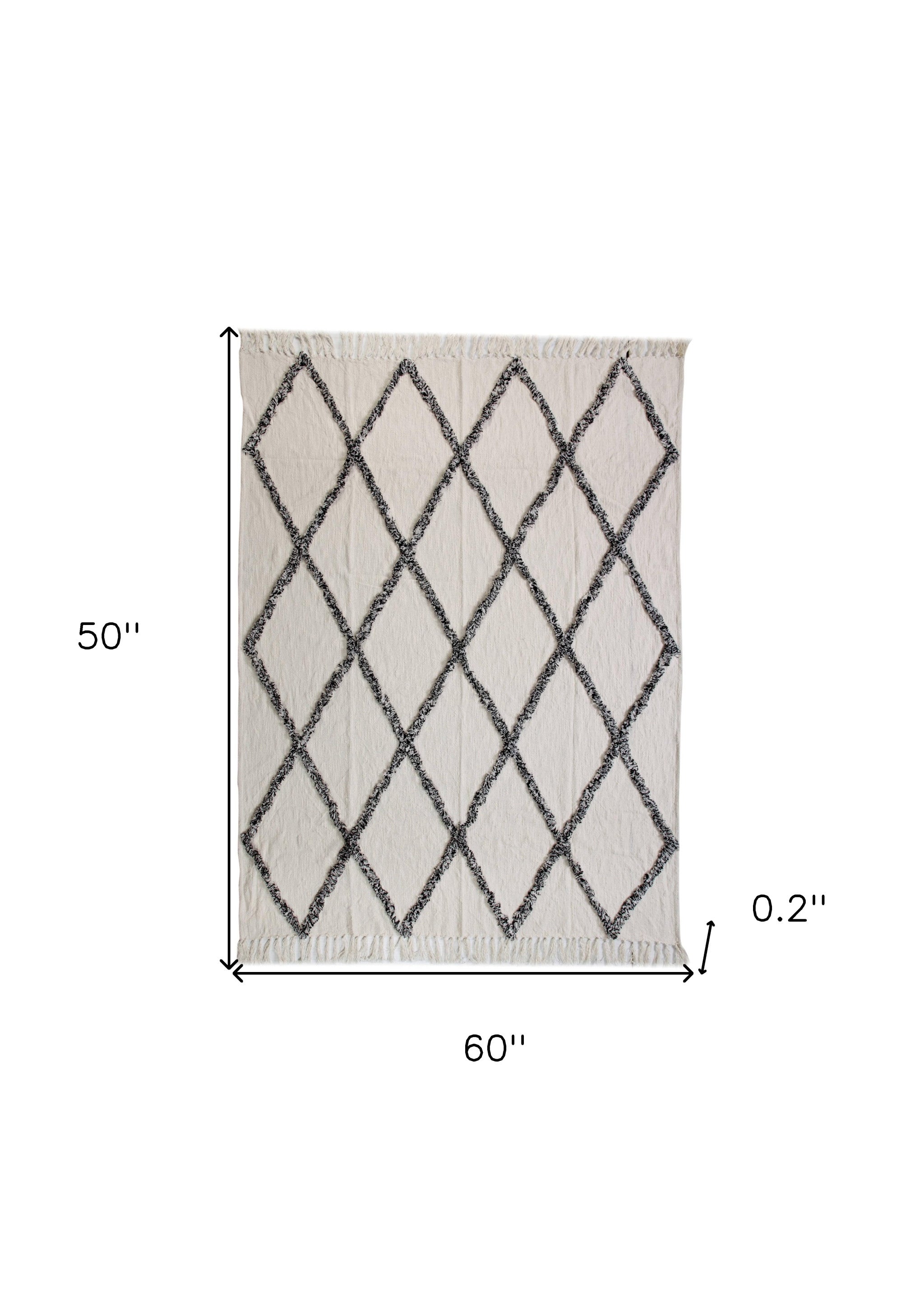 60" X 50" Cream Woven Cotton Geometric Throw Blanket with Fringe