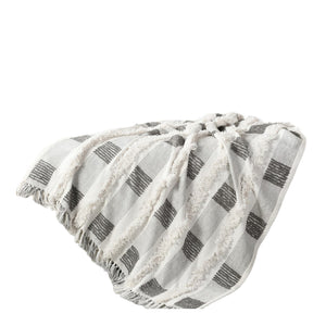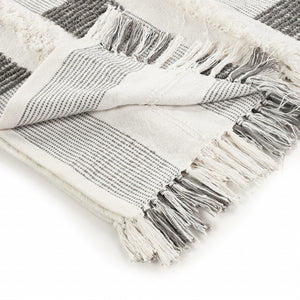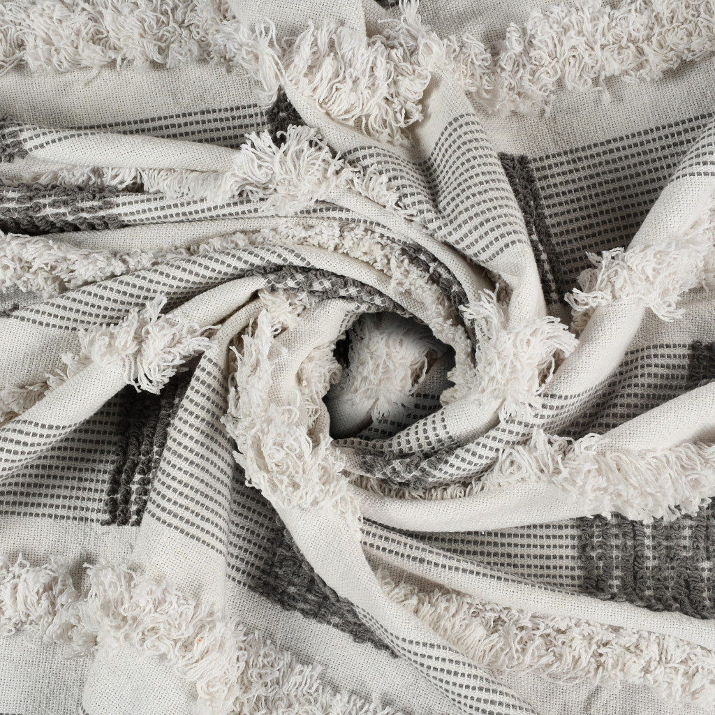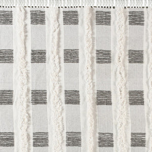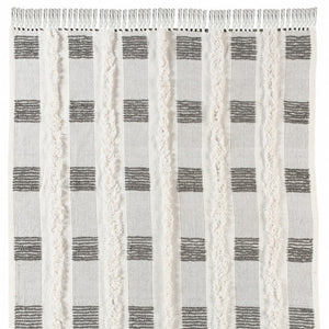 60" X 50" Gray and White Woven Cotton Checkered Throw Blanket with Fringe