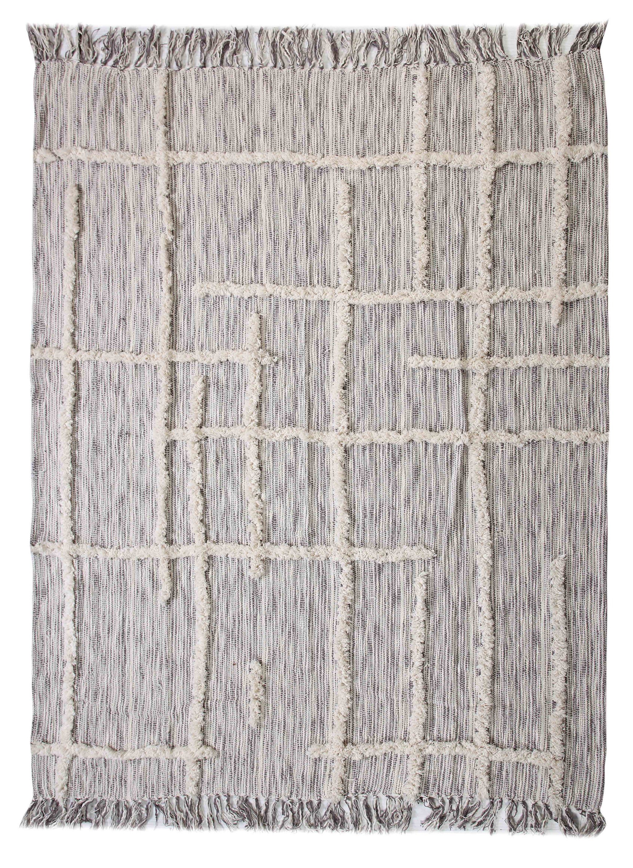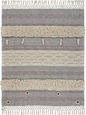 60" X 50" Gray Woven Cotton Striped Throw Blanket with Fringe