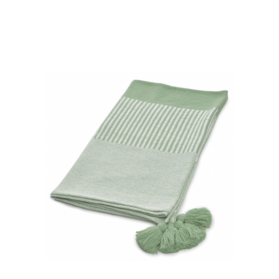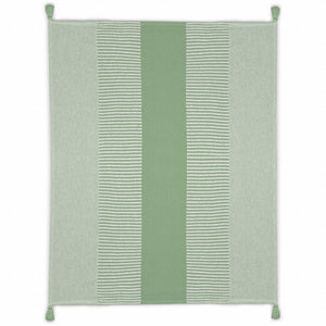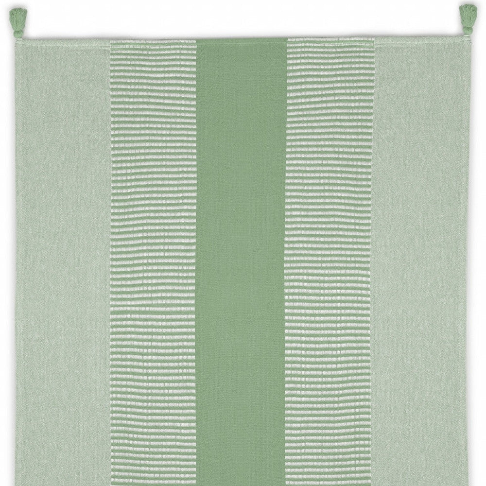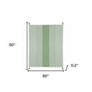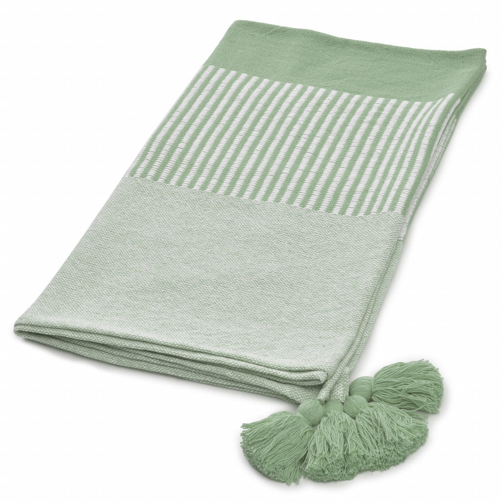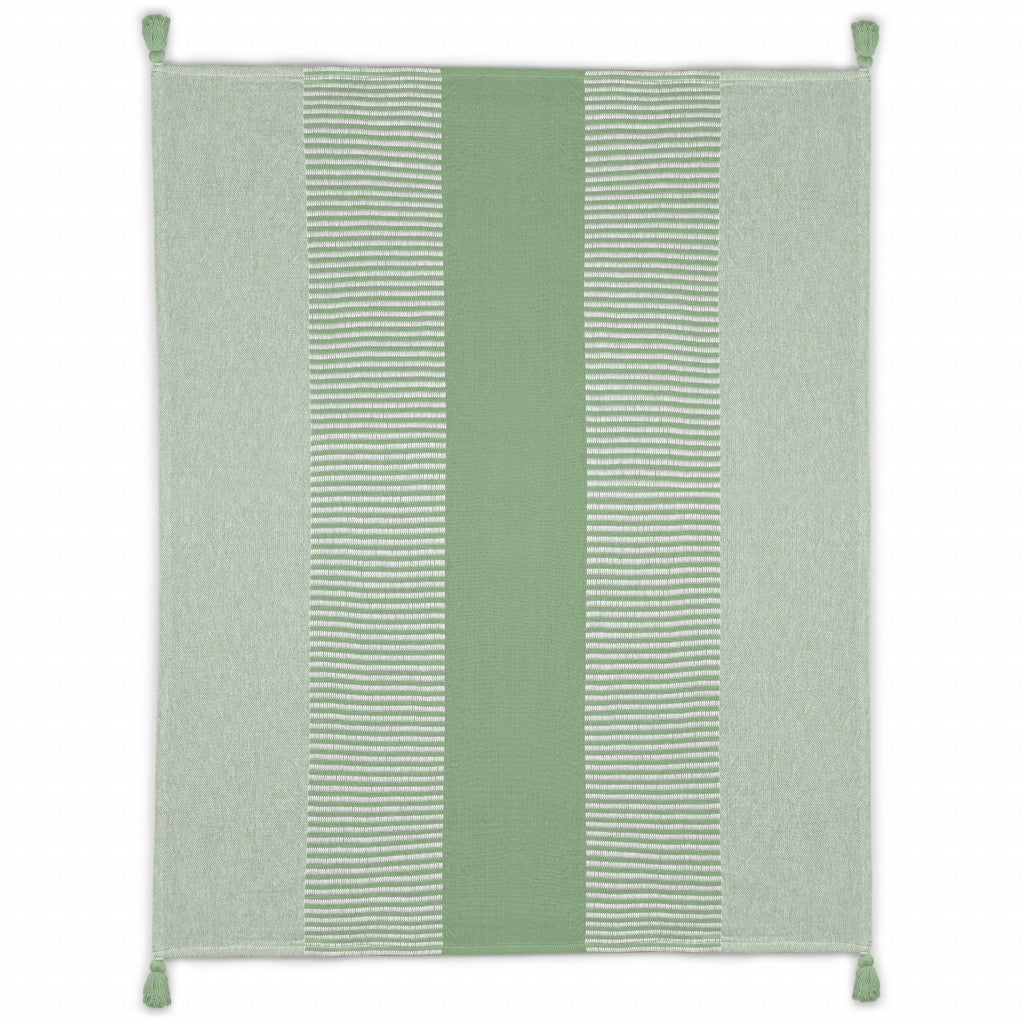 60" X 50" Green Woven Cotton Striped Throw Blanket with Tassels