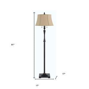 61" Bronze Two Light Traditional Shaped Floor Lamp With Brown Square Shade