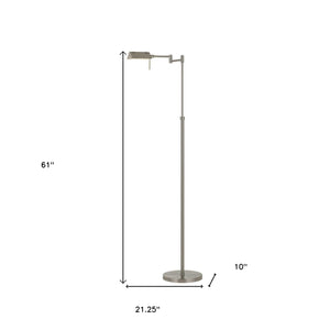 61" Nickel Metal Adjustable Swing Arm Floor Lamp With Gray Shade