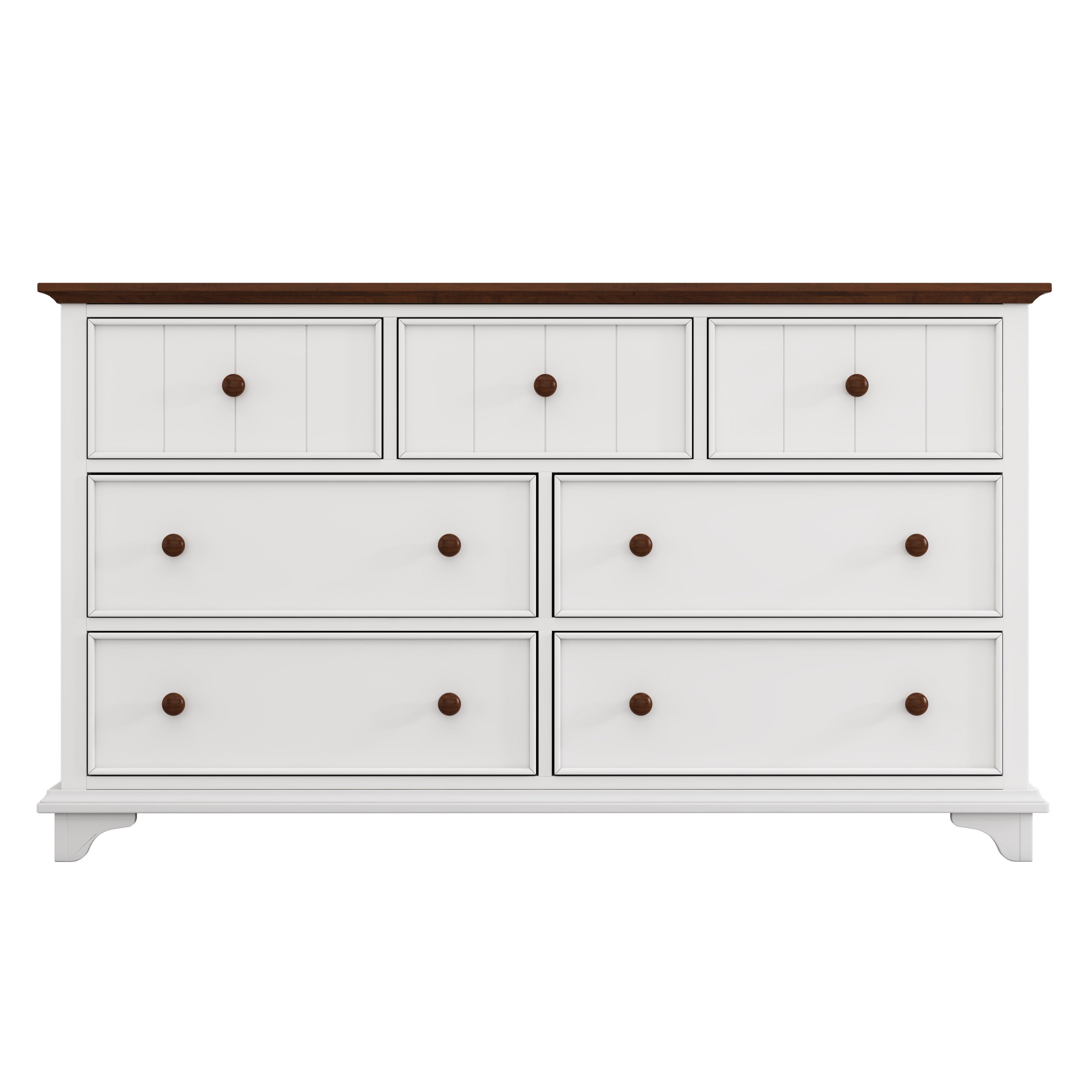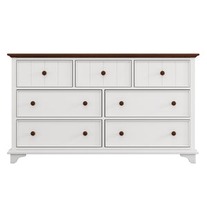 61" White And Walnut Wood Seven Drawer Captains Dresser