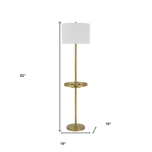 62" Brass Tray Table Floor Lamp With White Square Shade