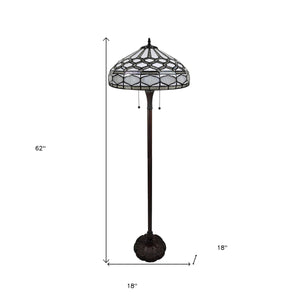 62" Brown And White Two Light Torchiere Floor Lamp With White Geometric Glass Dome Shade