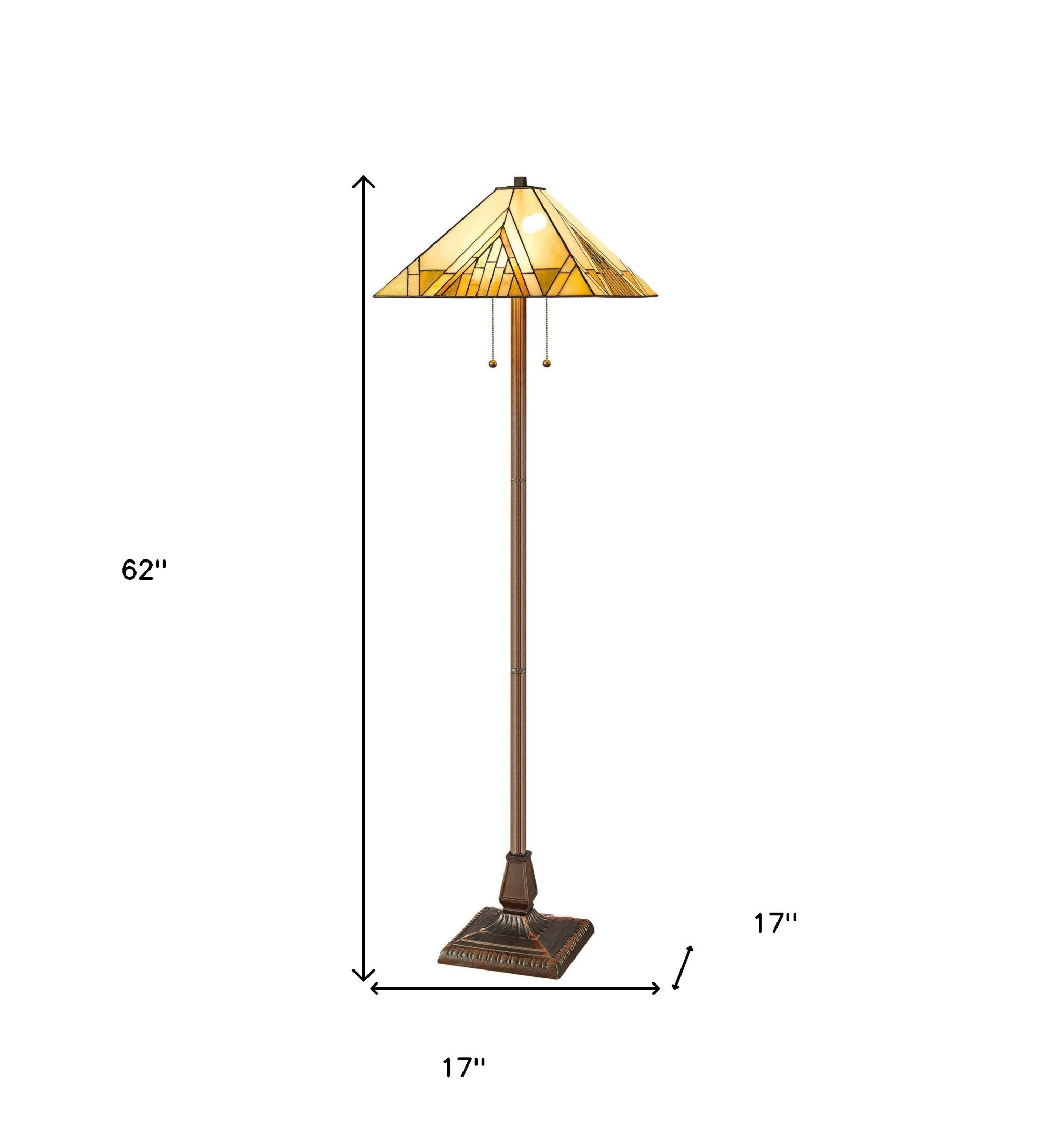 62" Brown Two Light Beige And Brown Geometric Stained Glass Floor Lamp