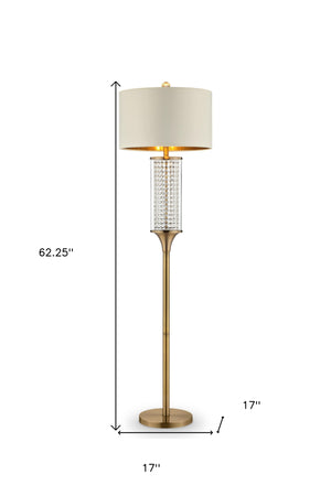 62" Gold Column Floor Lamp With Off White Metal Drum Shade
