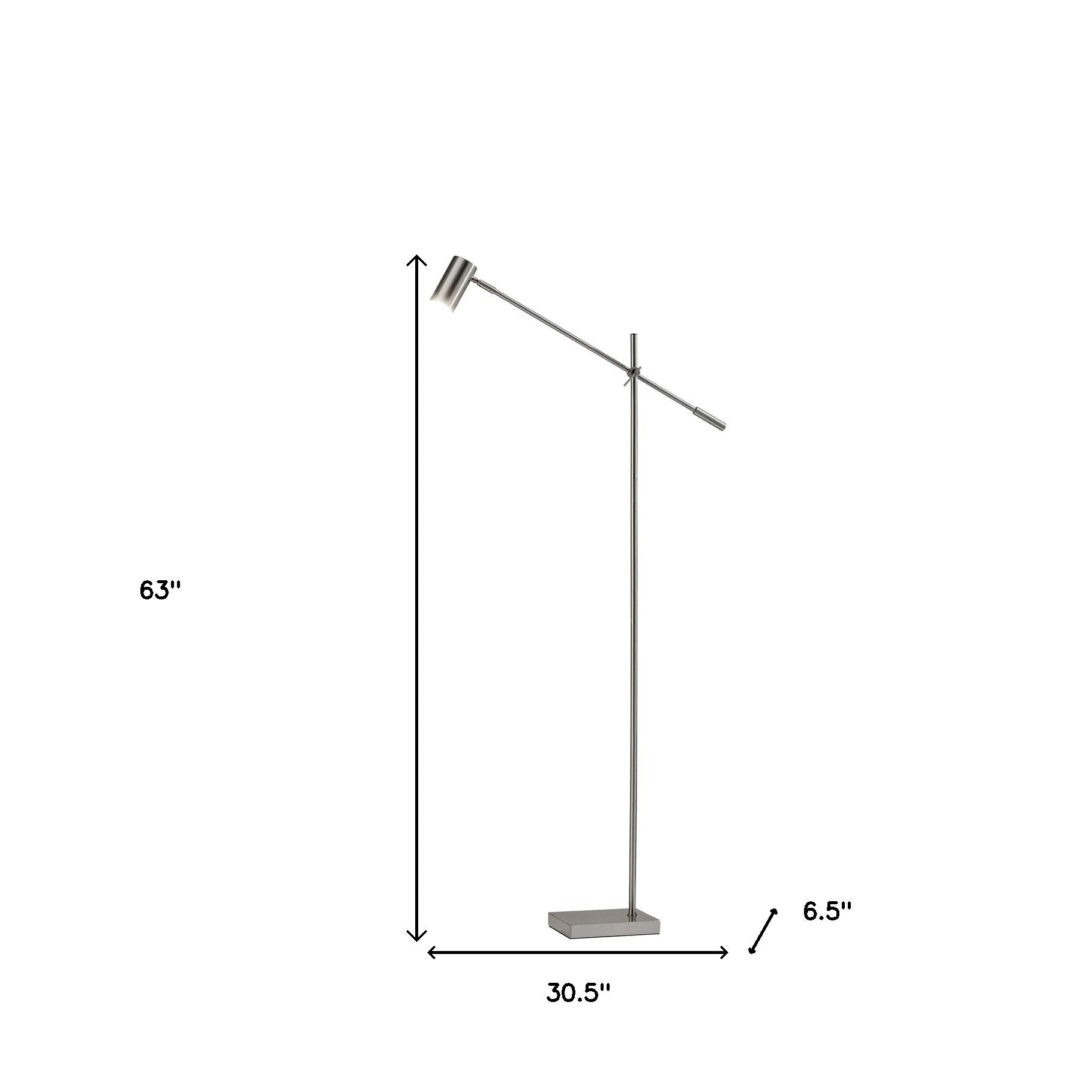 63" Silver LED Task Floor Lamp With Silver Metal Drum Shade