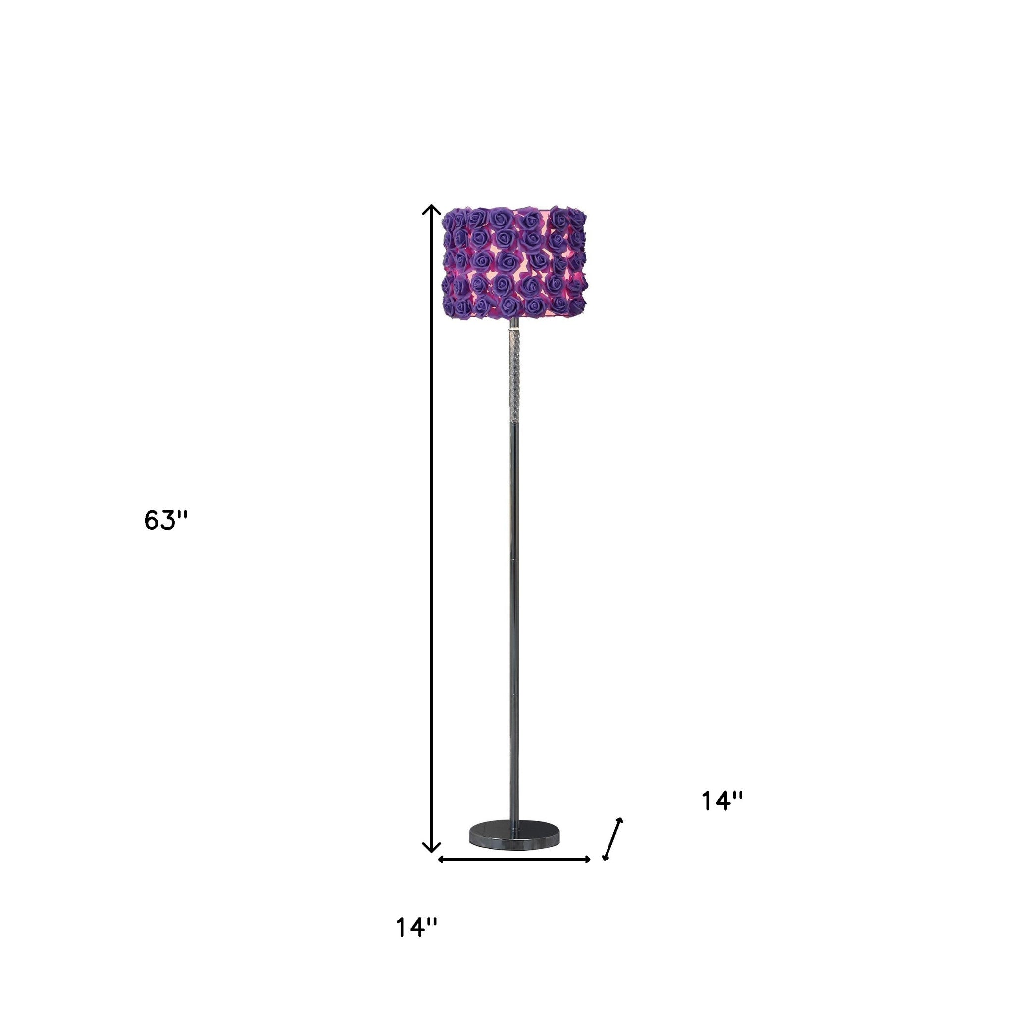 63" Steel and Acrylic Floor Lamp With Purple Flowers Fabric Drum Shade