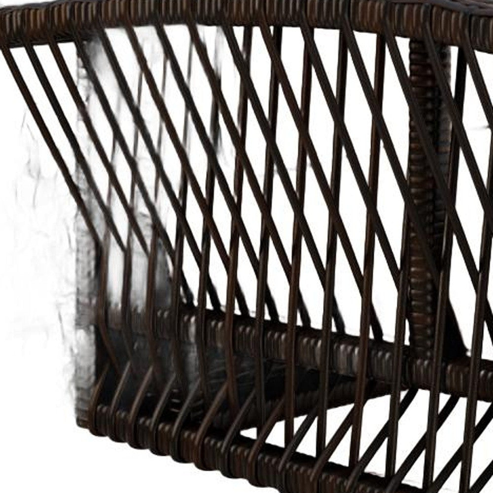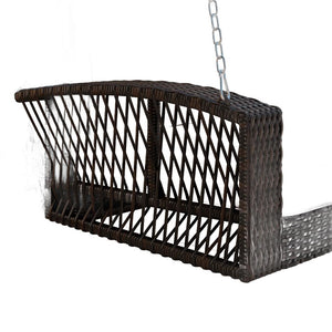 69" Brown Woven Rattan Outdoor Swing Chair with Beige Cushions