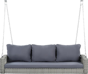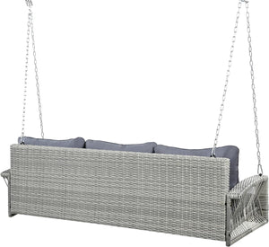 69" Gray Woven Rattan Outdoor Swing Chair with Gray Cushion