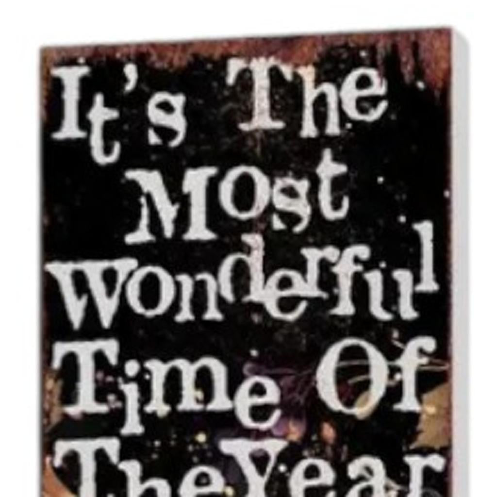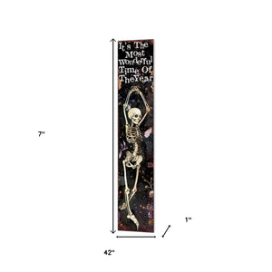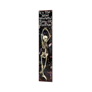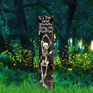 7" Black And White Solid Wood It's The Most Wonderful Time Of The Year Halloween Skeleton Garden Stake